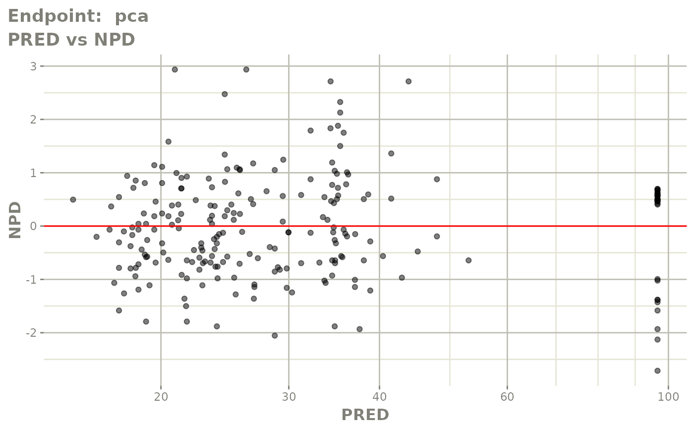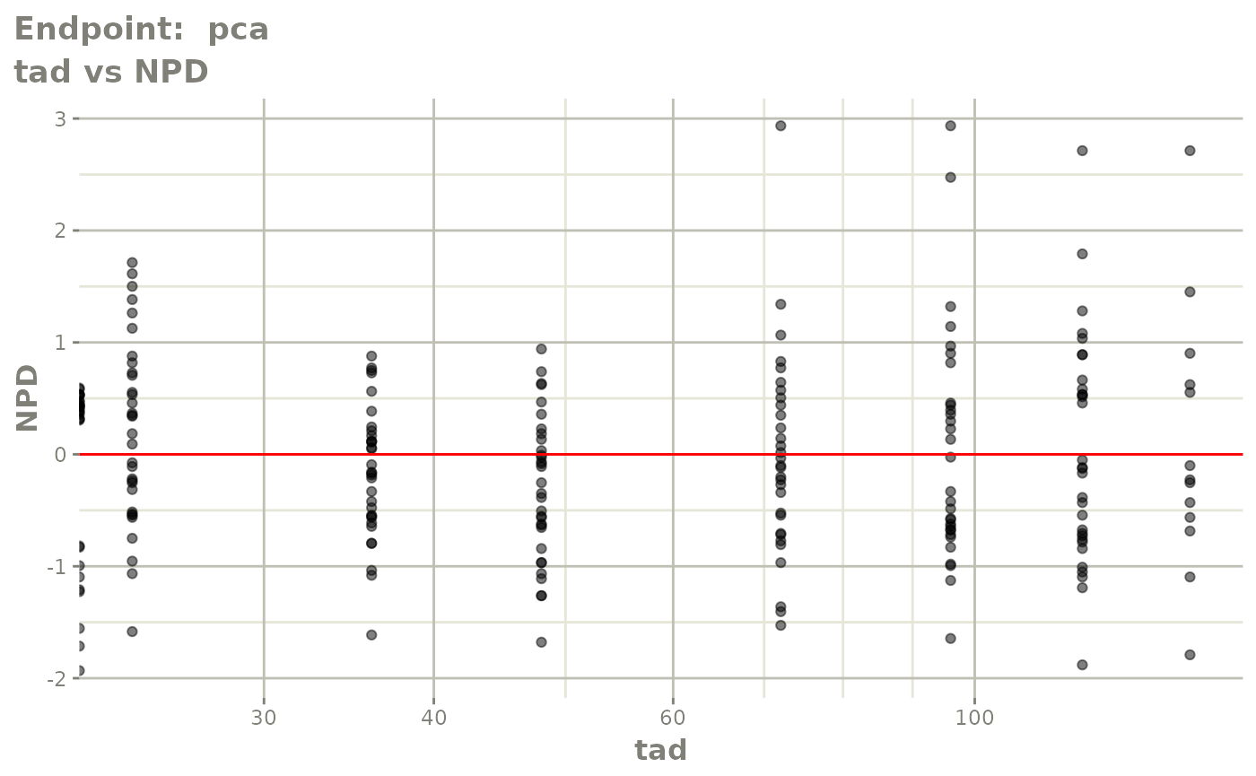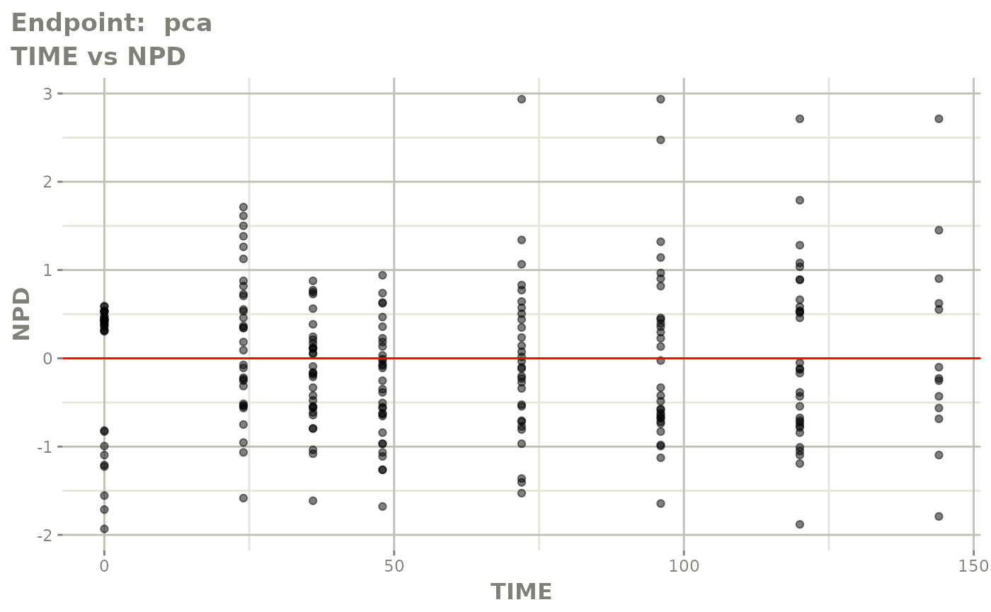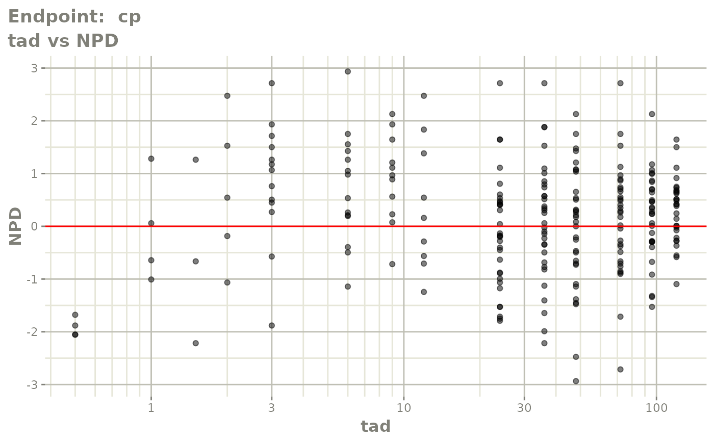 v1f <- vpcPlot(fit.TOF, show=list(obs_dv=TRUE), scales="free_y") +
