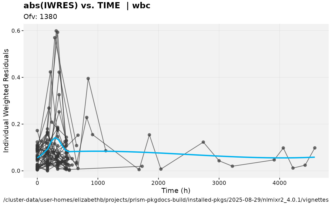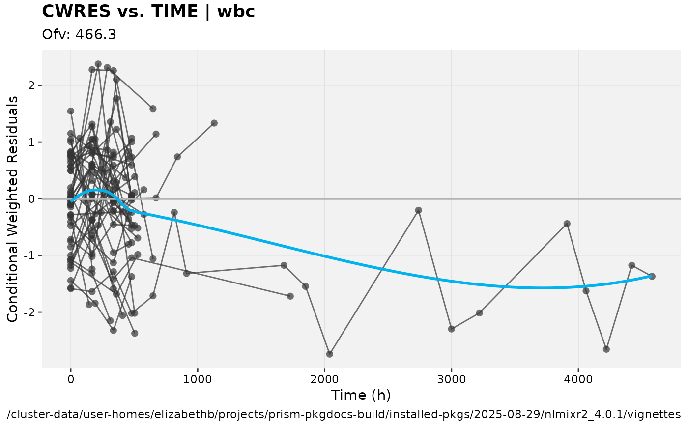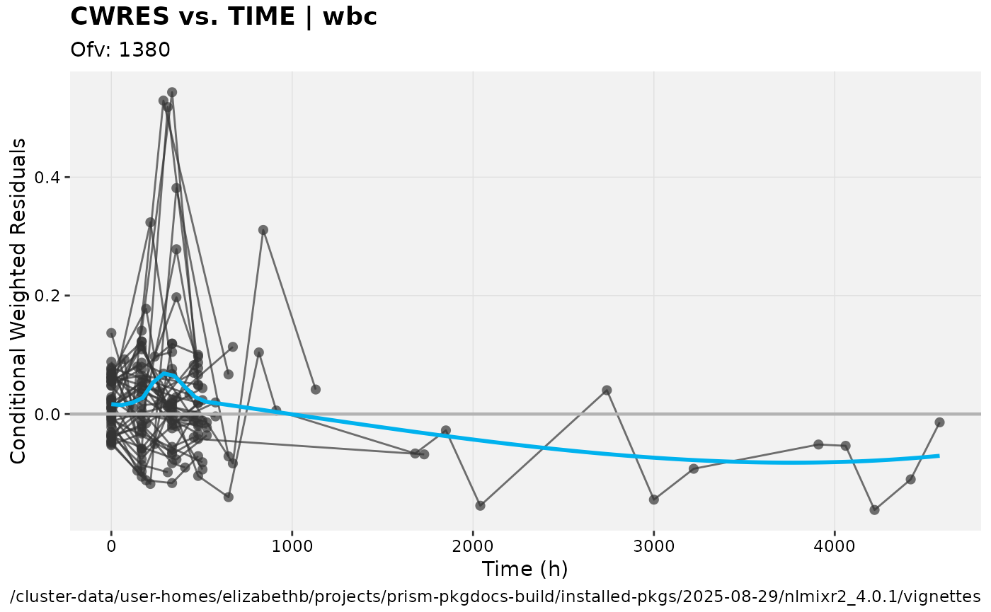 fit.F <- nlmixr(wbc, d3, est="focei", list(print=0), table=list(cwres=TRUE, npde=TRUE))