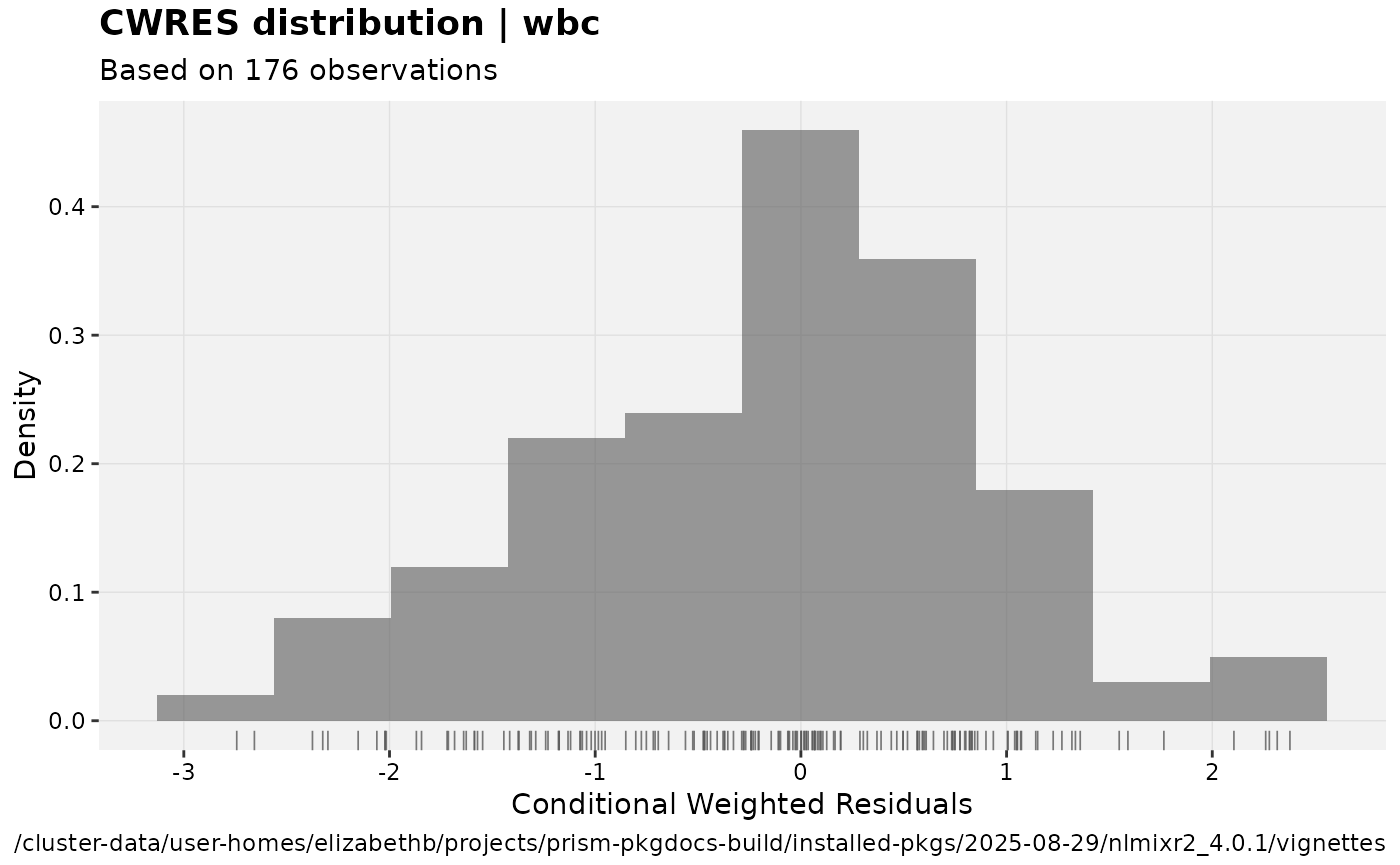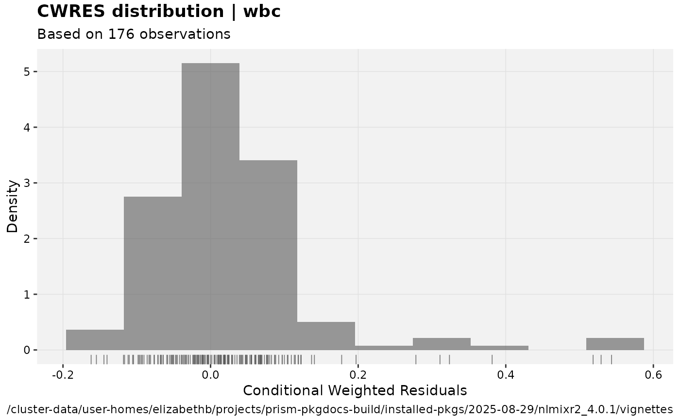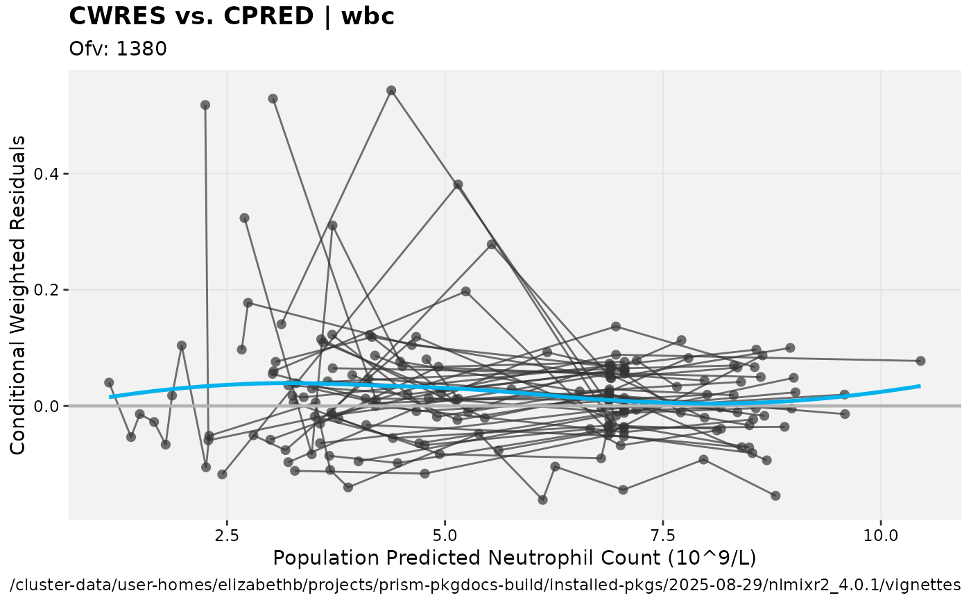 fit.F <- nlmixr(wbc, d3, est="focei", list(print=0), table=list(cwres=TRUE, npde=TRUE))