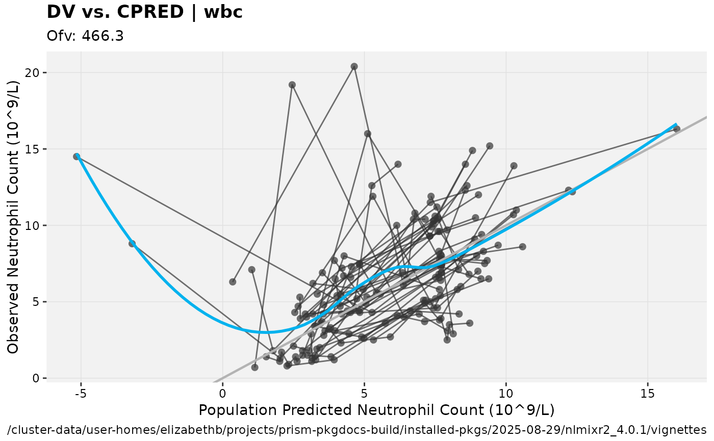 show=list(obs_dv=TRUE), ylab = "Neutrophil Count (10^9/L)", xlab = "Time (h)")
