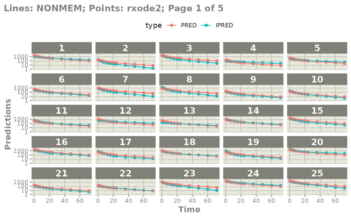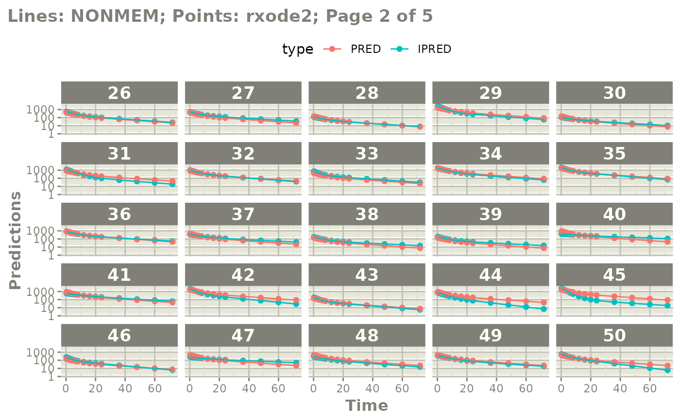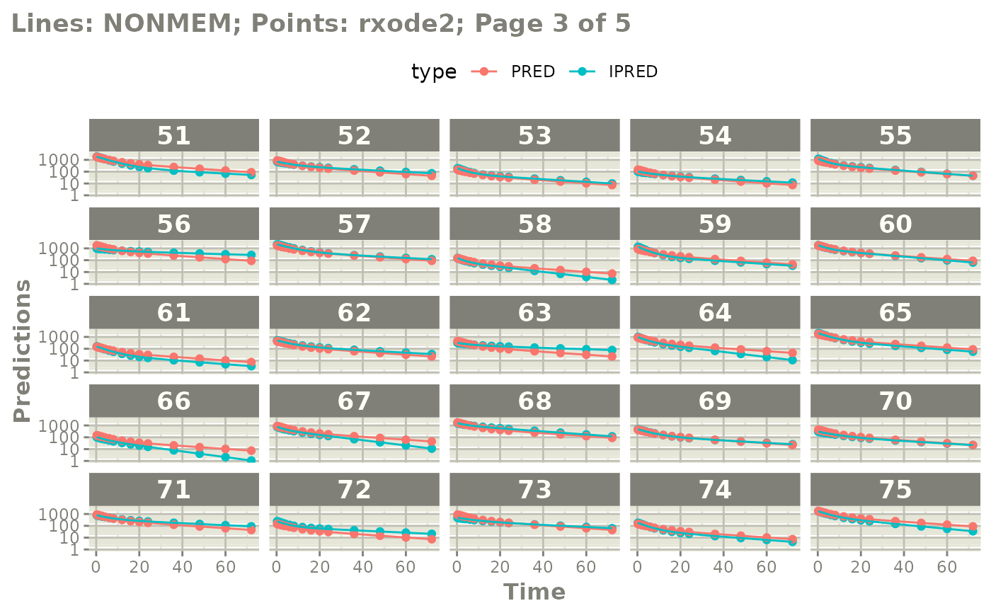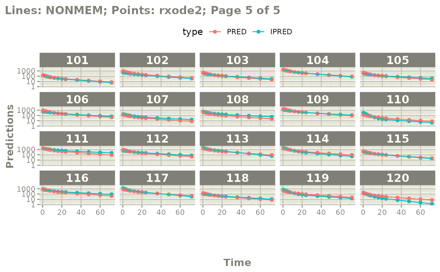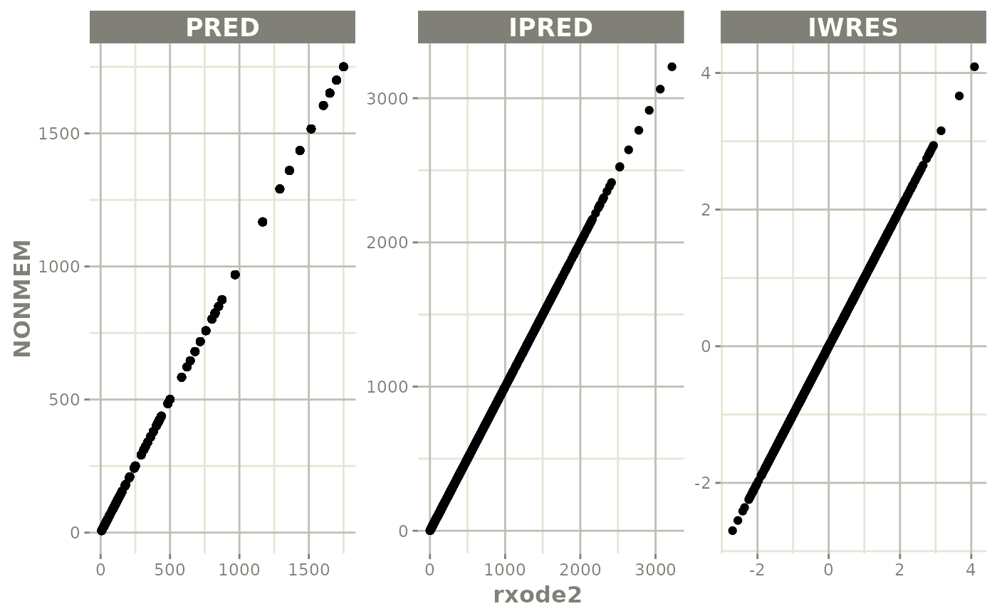 #> NONMEM/rxode2 comparison data: $iwresCompare, $predCompare, $ipredCompare
