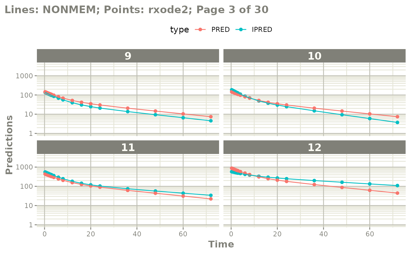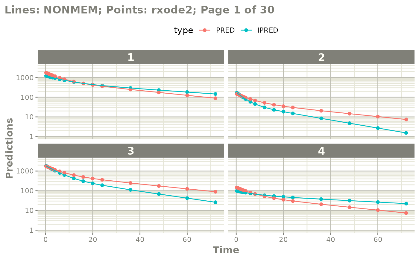 #> captured NONMEM table outputs: $predData, $ipredData