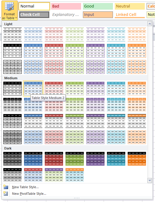 openXL(wb) ## opens a temp versionThe ‘tableStyle’ argument in writeDataTable can be any of the predefined tableStyles in Excel.