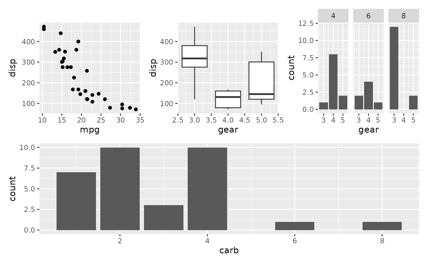 In addition to the + operator known in ggplot2, patchwork defines logic