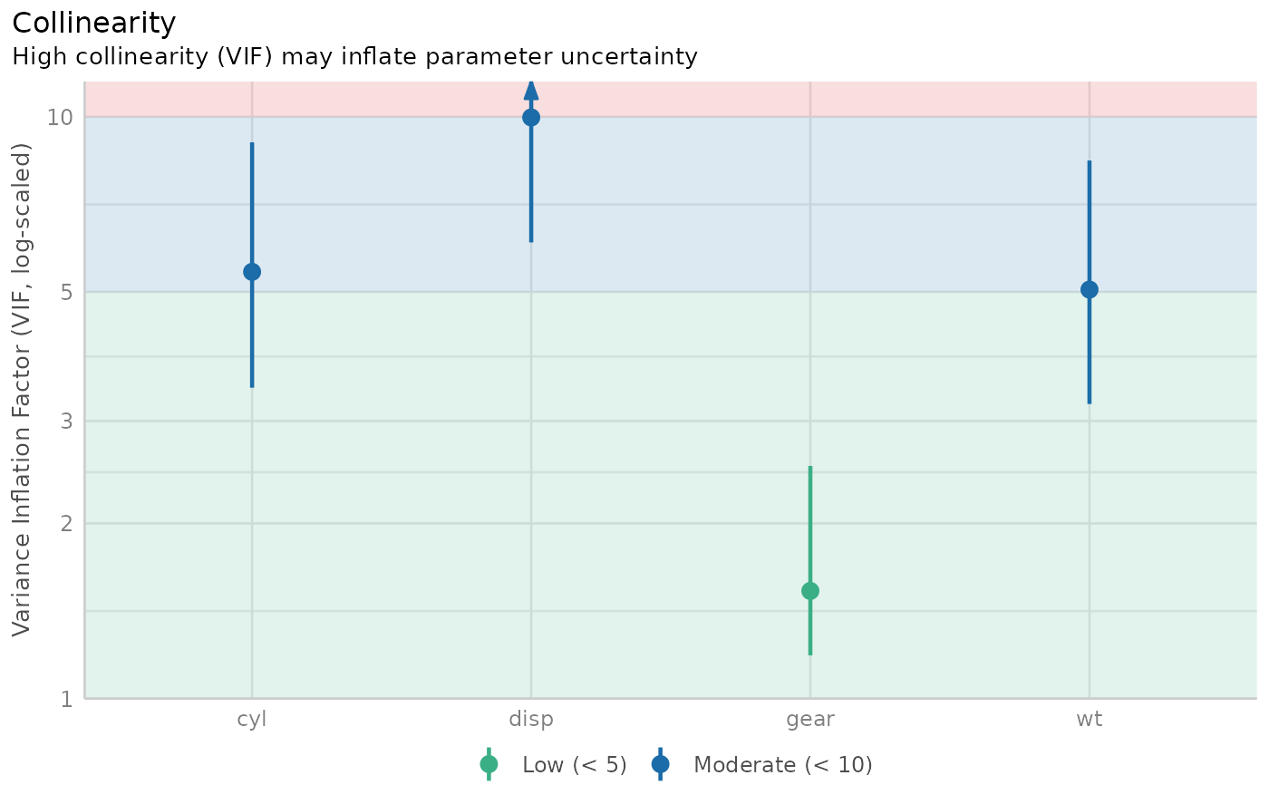 see::plot.see_check_collinearity() for options to customize the plot.