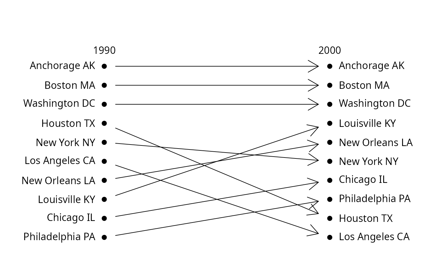 bumpchart.RdDisplay a chart with two of more columns of points in order of ascending values with lines connecting the points in a row.