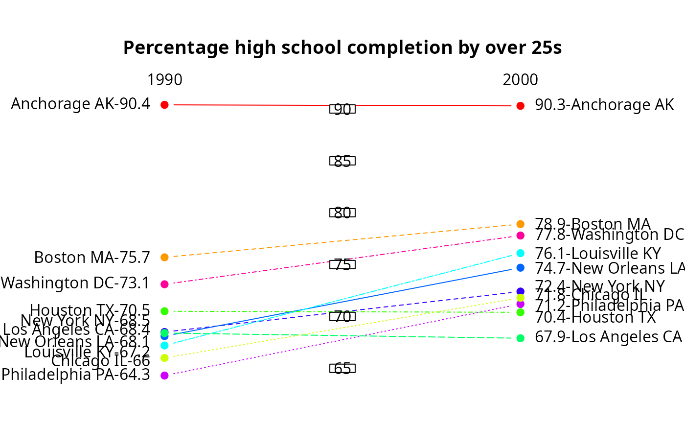 bumpchart(educattn,main="Rank for high school completion by over 25s",