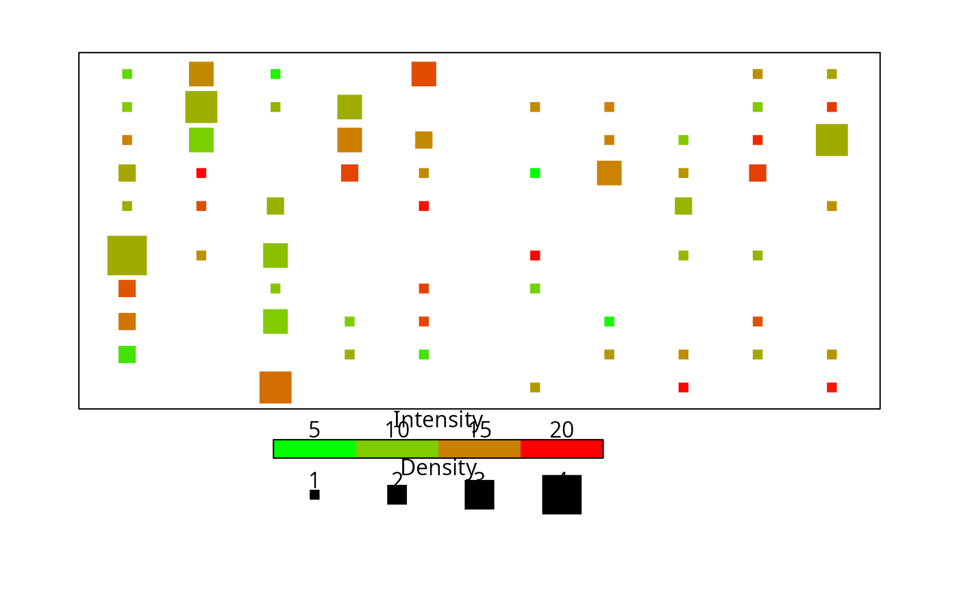densityGrid(xyz,range.cex=c(1,4),xlim=c(1,10),ylim=c(1,10),