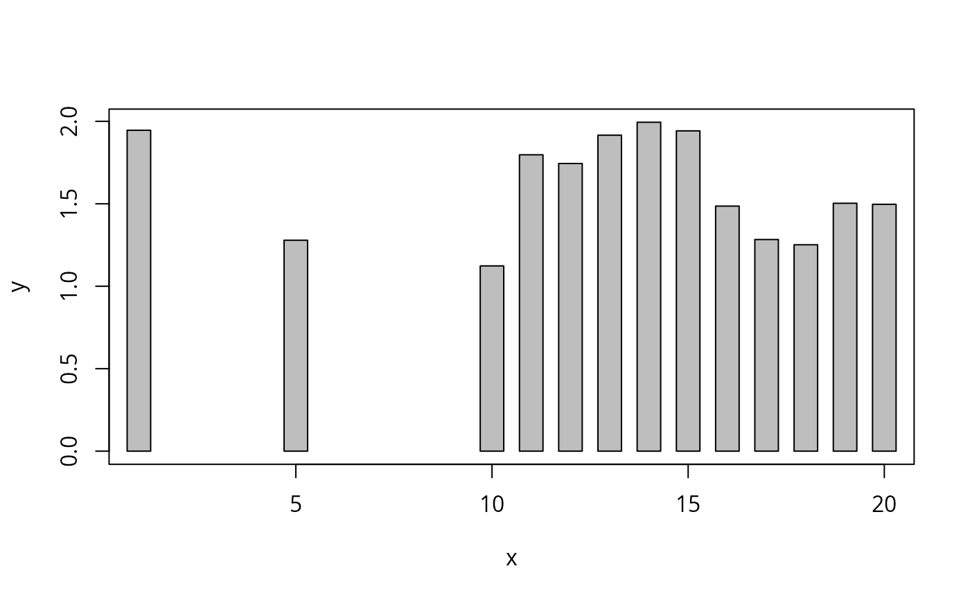 ylab=paste(deparse(substitute(y))),width=0.6,ylim=NULL,col="gray",...)Arguments