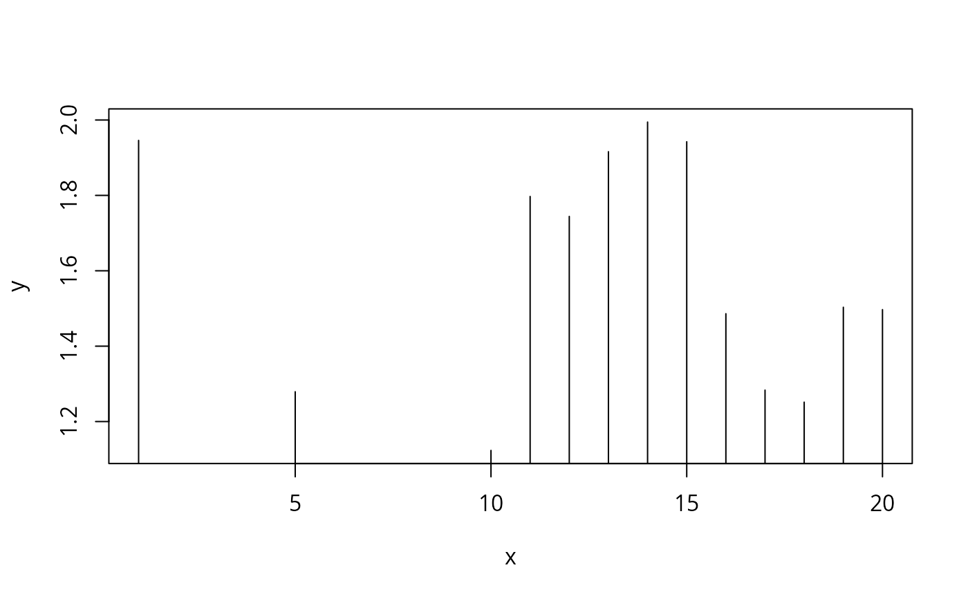 plot(y~x,data=d,type="h")