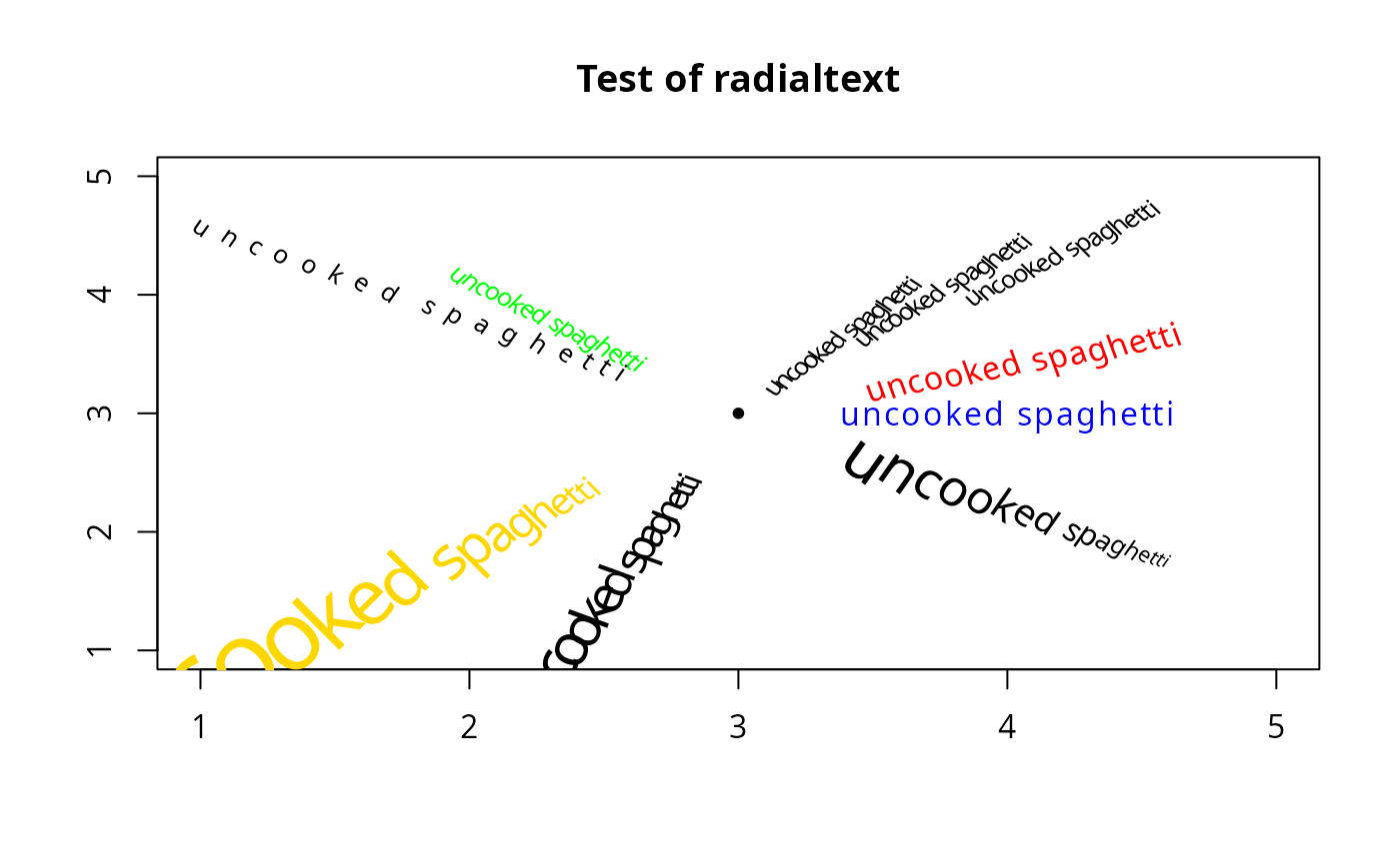plot(0, xlim=c(1,5), ylim=c(1,5), main="Test of radialtext",
