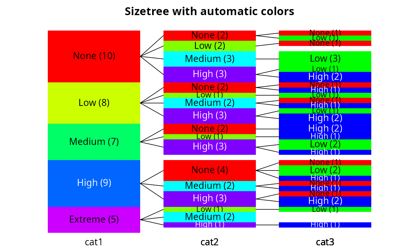 sizetree(hcats,main="Sizetree with automatic colors")