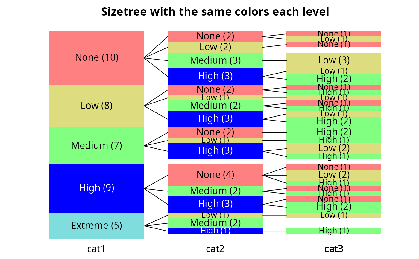 main="Sizetree with the same colors each level")