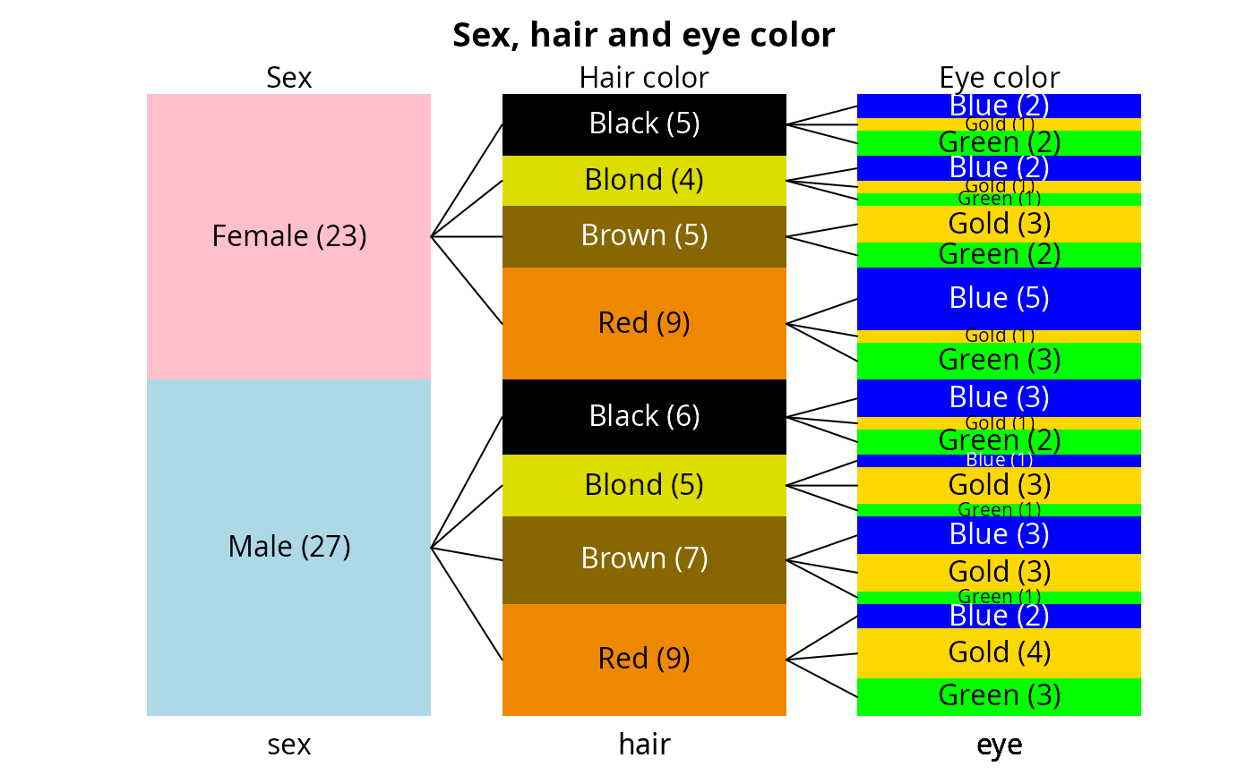 col=shecol,toplab=c("Sex","Hair color","Eye color"))