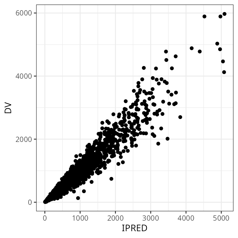 p <- ggplot(df, aes(IPRED,DV)) + geom_point()