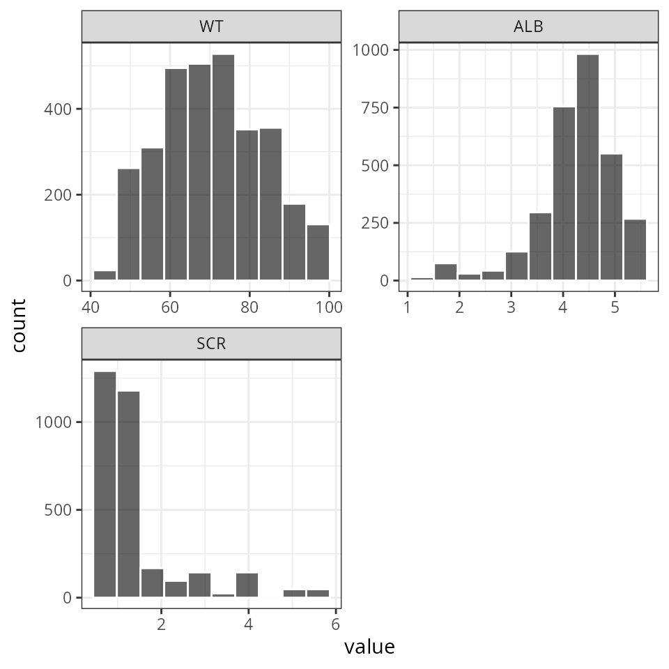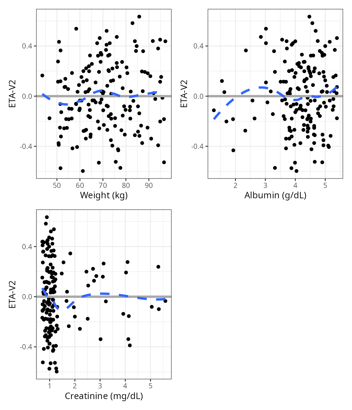 covs <- c("WT//Weight (kg)", "ALB//Albumin (g/dL)", "SCR//Creatinine (mg/dL)")Override the df and id objects in the above
