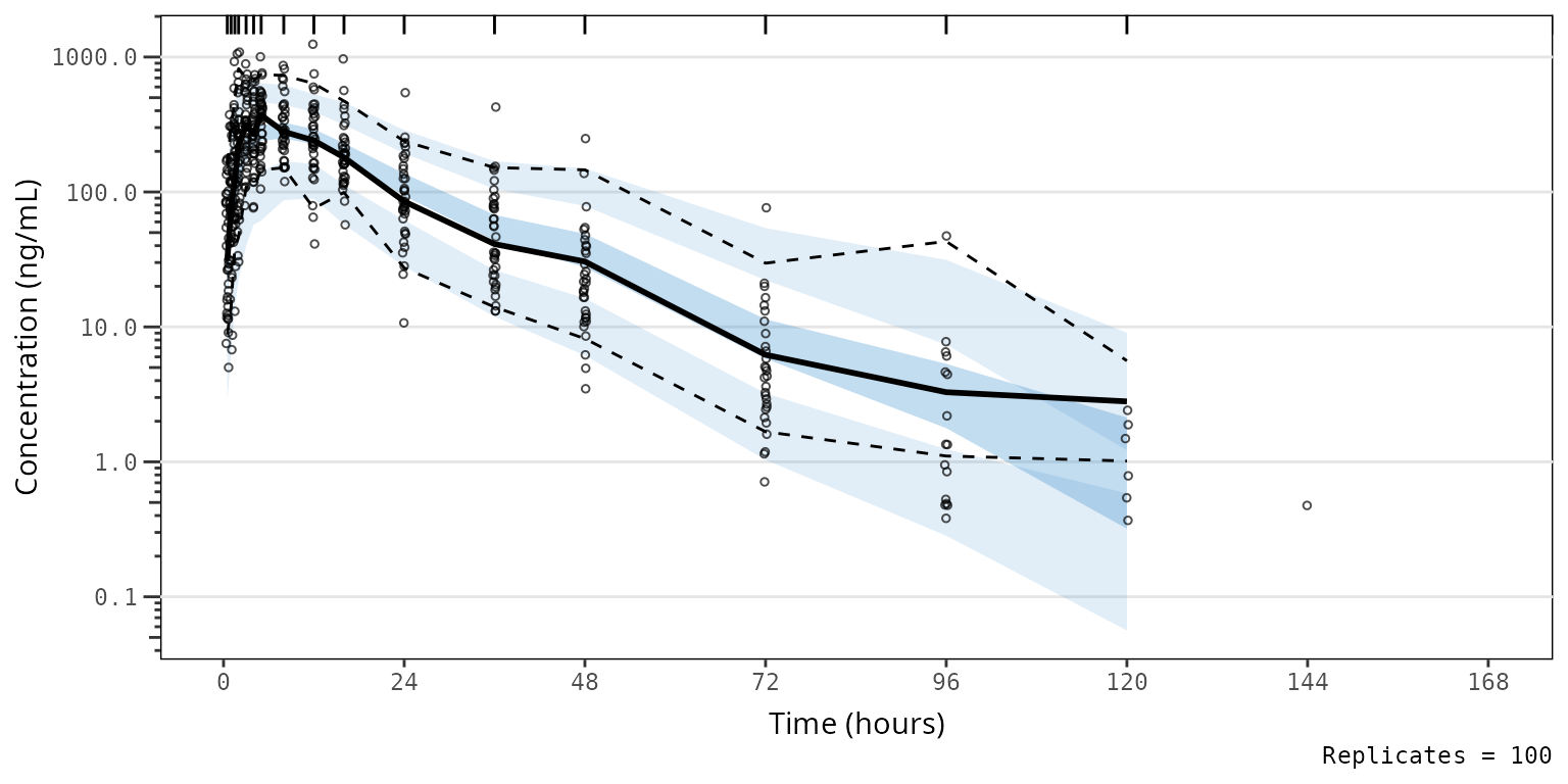 simout <- df_mrgsim_replicate(data = data, model = model,replicates = 100,