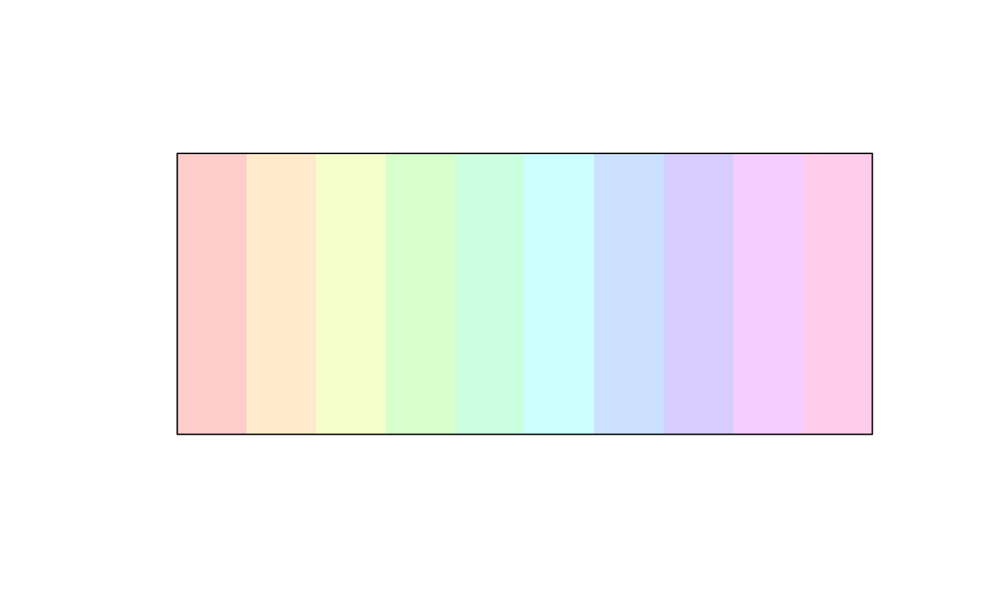 clr_alpha(col, alpha = 0.5)a color object or vector of any of the three kinds of R color specifications, i.e., either a color name (as listed by colors()), a hexadecimal string of the form "#rrggbb" or "#rrggbbaa" (see rgb), or a positive integer i meaning palette()[i].