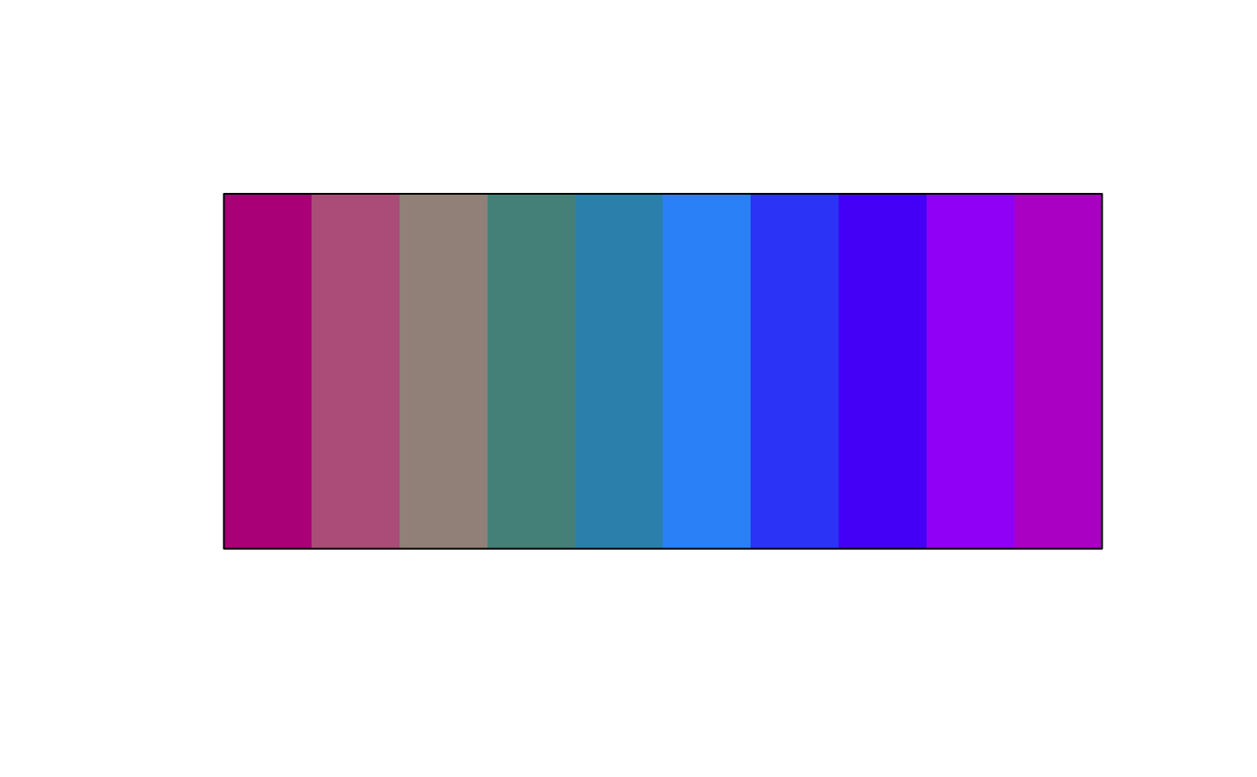 clr_mix(col, mix_in, ratio = 0.5)a color object or vector of any of the three kinds of R color specifications, i.e., either a color name (as listed by colors()), a hexadecimal string of the form "#rrggbb" or "#rrggbbaa" (see rgb), or a positive integer i meaning palette()[i].