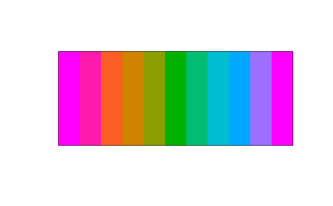 plot(clr_rotate(terrain.colors(10), degrees = 90))