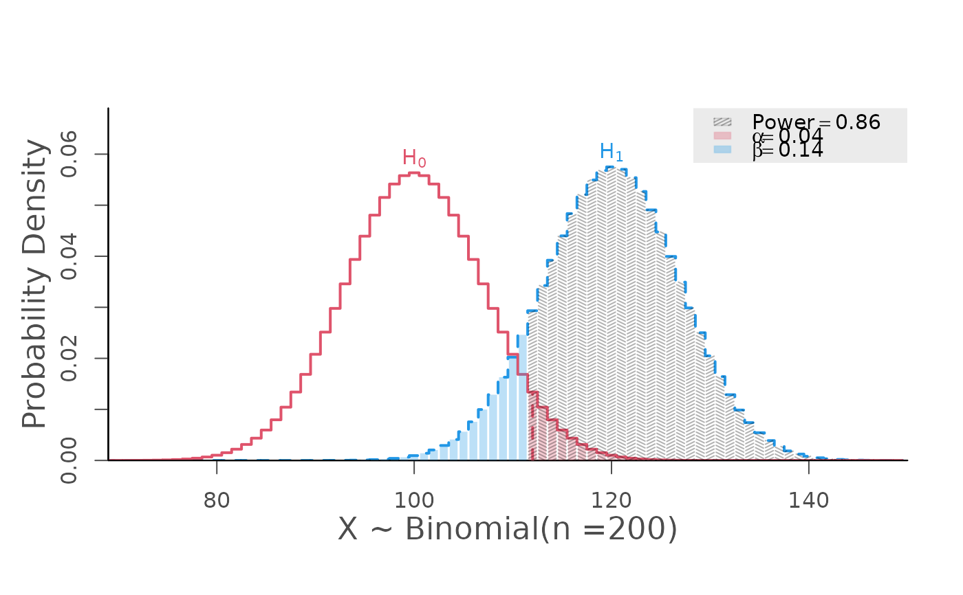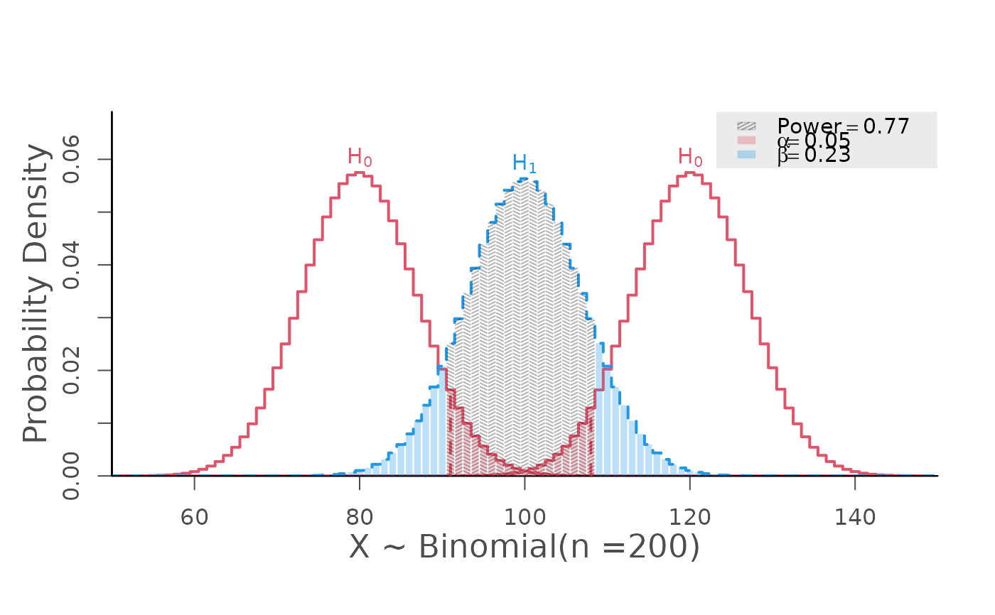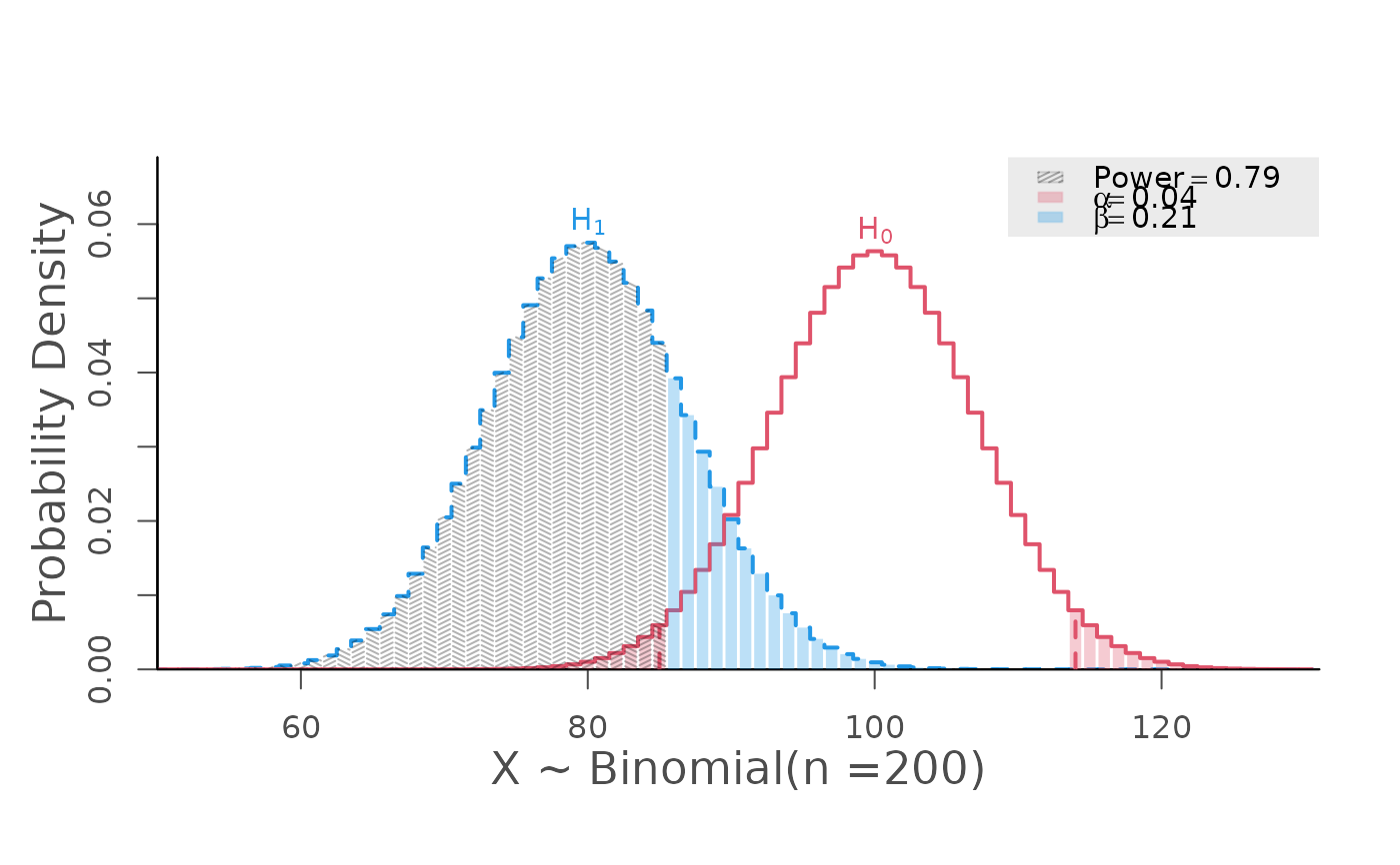 generic.binom.test.RdCalculates power for the generic binomial test with (optional) Type 1 and Type 2 error plots.