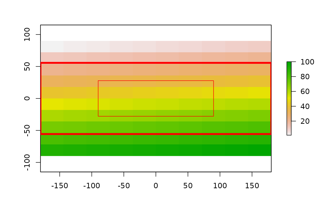 plot(x, col=terrain.colors(3), breaks=brk, axis.args=arg)