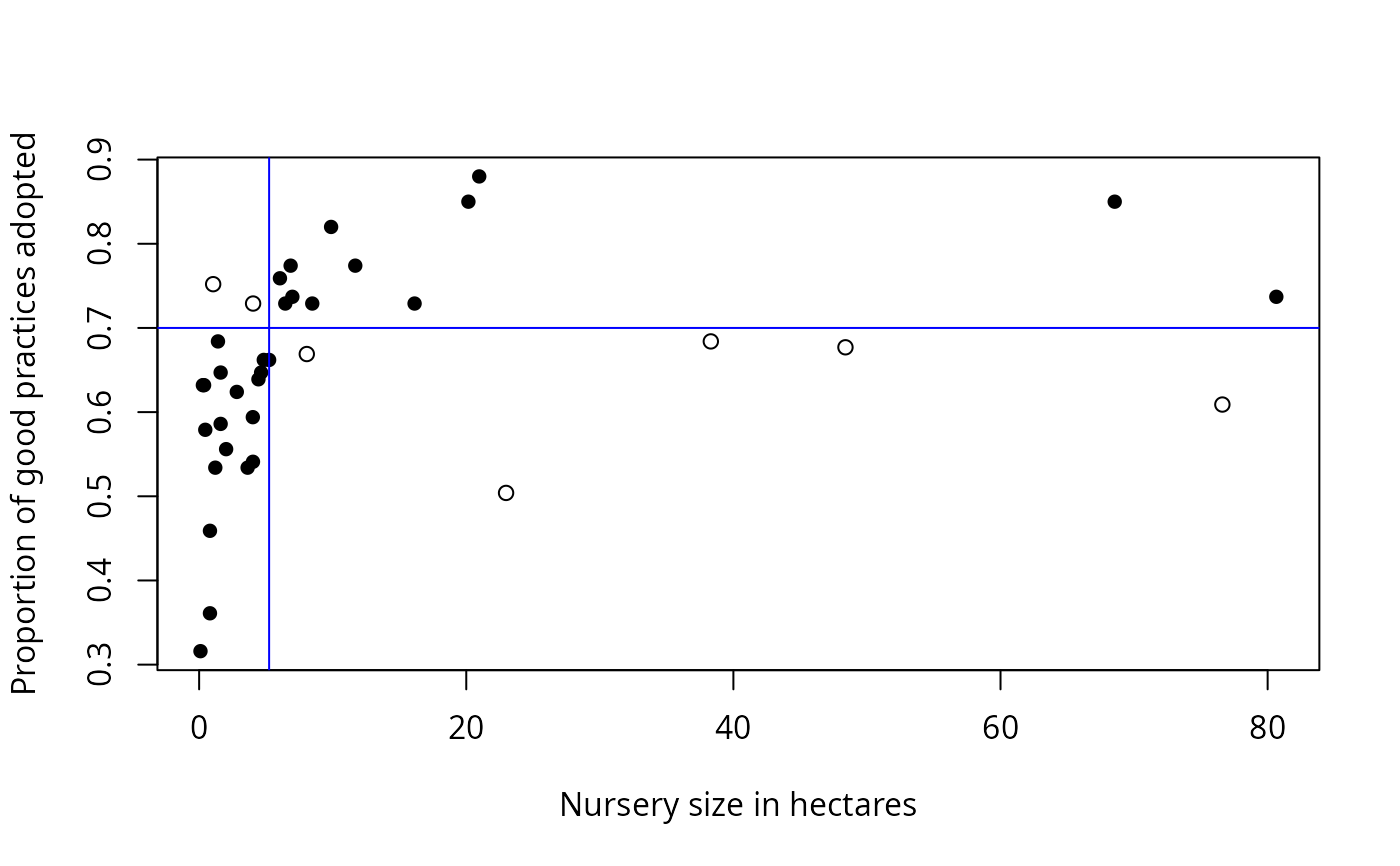 xlab = "Nursery size in hectares",