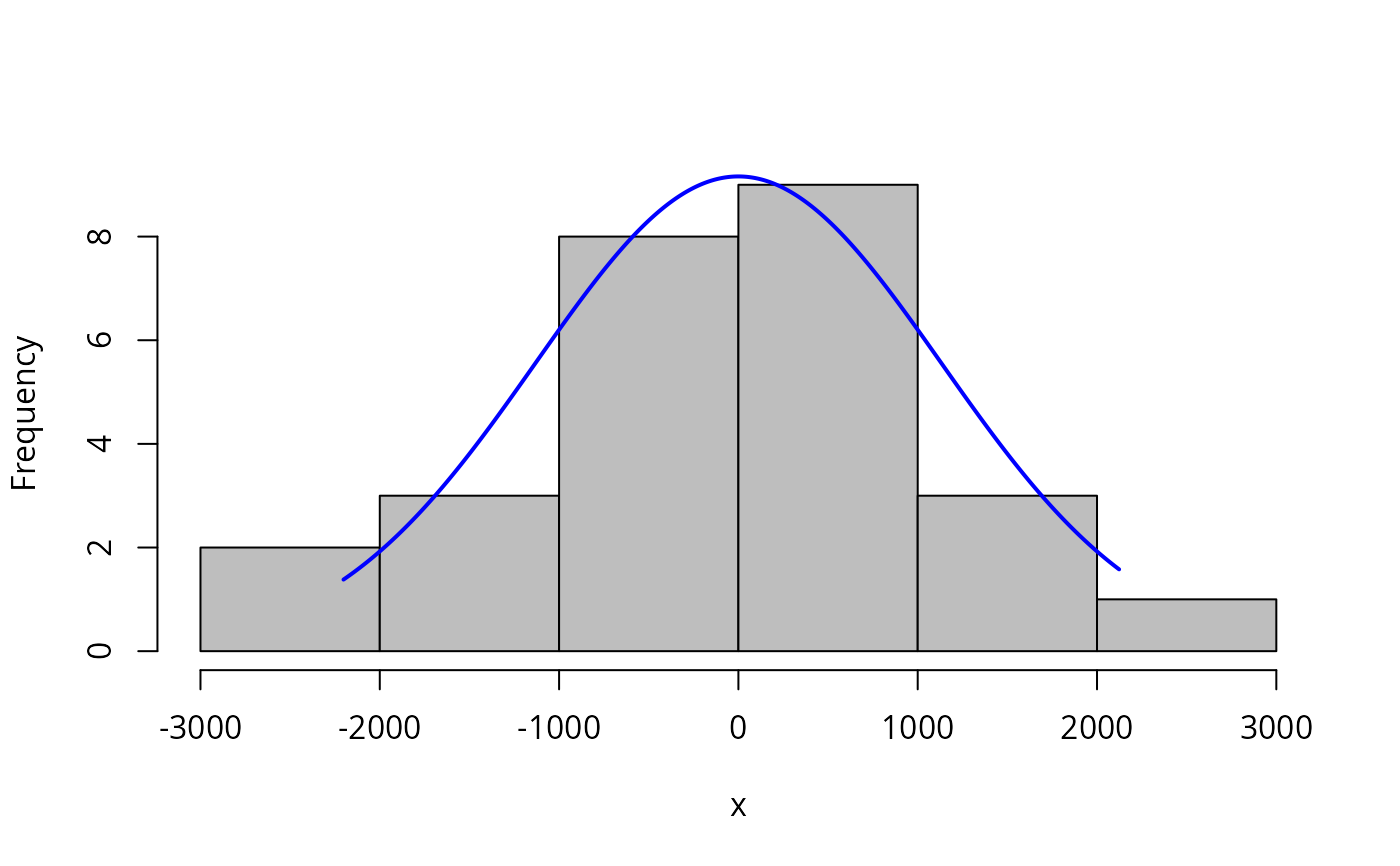 plotNormalHistogram.RdProduces a histogram for a vector of values and adds a normal curve with the same mean and standard deviation. The plot can be used to quickly compare the distribution of data to a normal distribution.