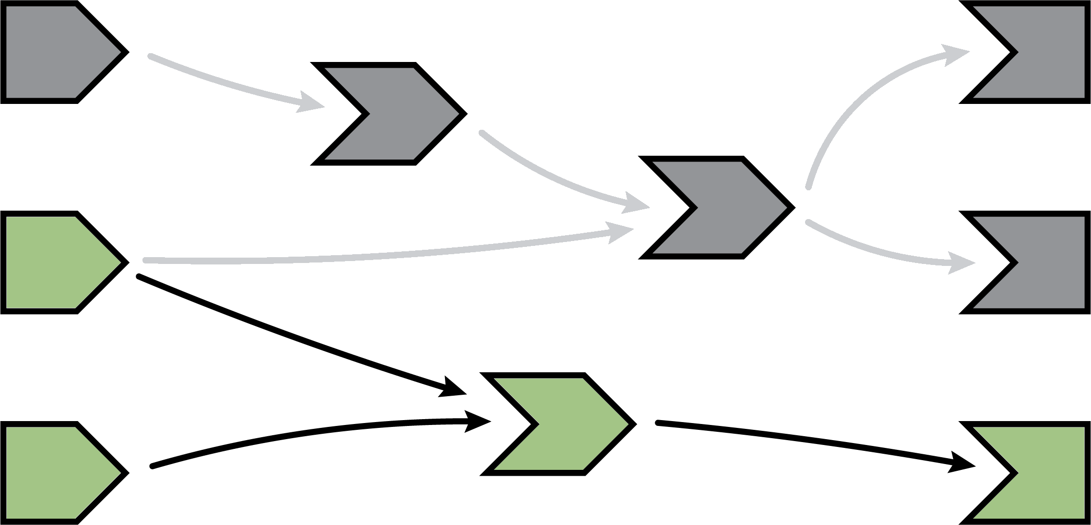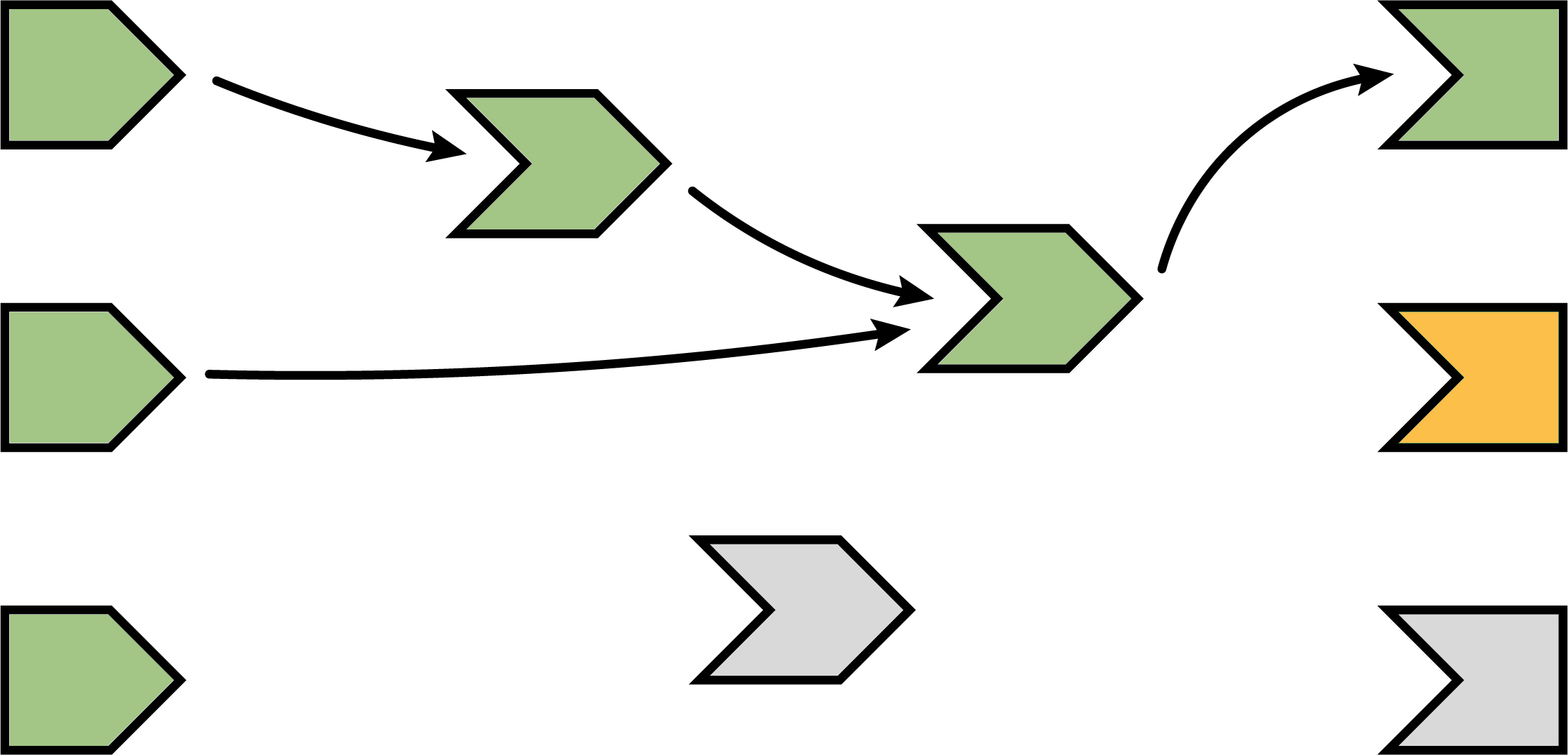 It may seem perverse that we put so much value on those relationships, and now we’re going out of our way to erase them! But the truth is, though these particular arrows were important, they are now themselves out of date. The only way to ensure that our graph stays accurate is to erase arrows when they become stale, and let Shiny rediscover the relationships around these nodes as they re-execute.