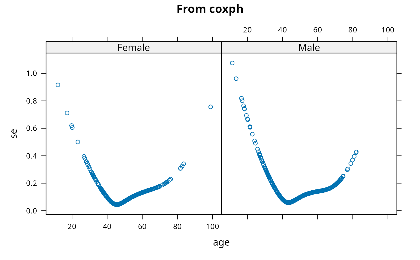 f <- cph(S ~ pol(age,2)*strat(sex), x=TRUE, eps=1e-9, iter.max=20)