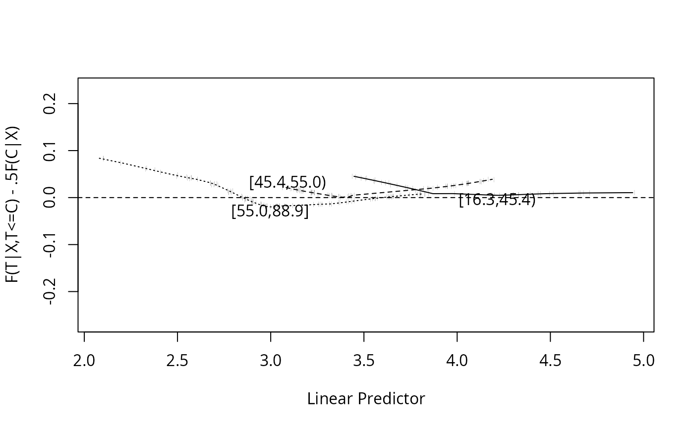 C, X) = 0.5 F(C | X)\). A smooth plot of \(F(T|X) - 0.5 F(C|X)\) for