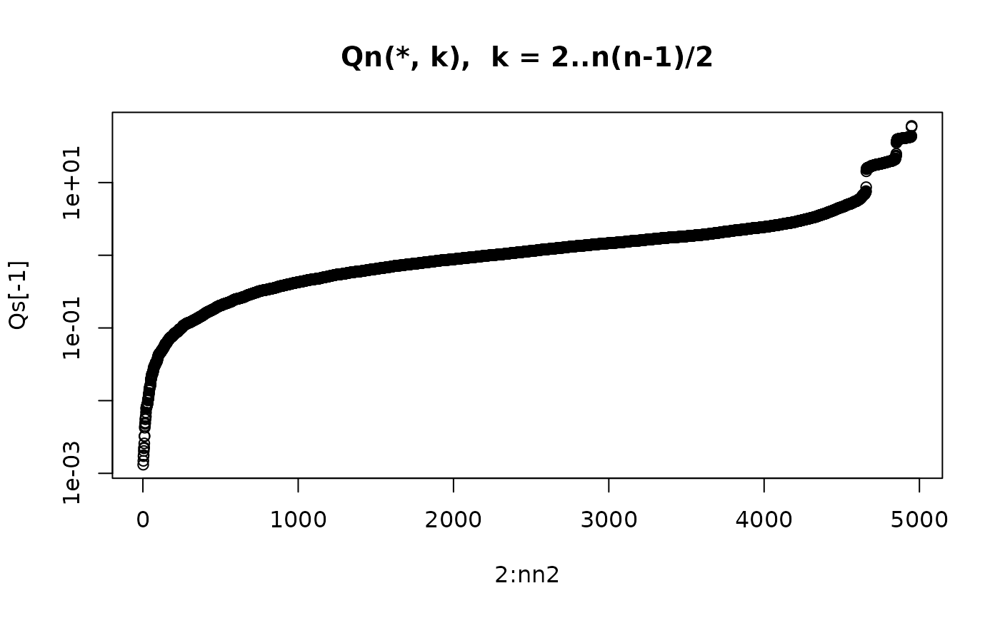 plot(2:nn2, Qs[-1], type="b", log="y", main = "Qn(*, k), k = 2..n(n-1)/2")