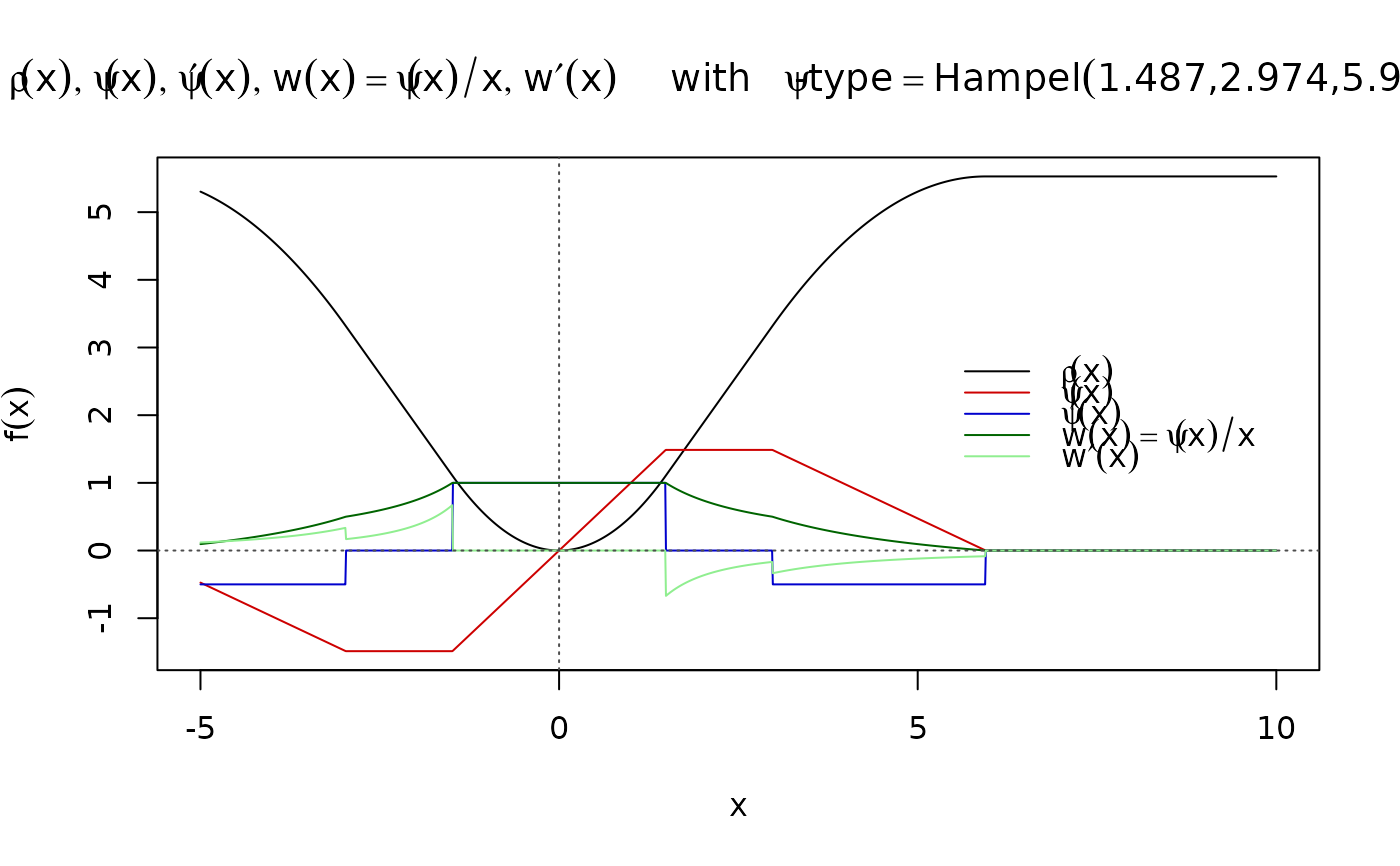 plot(hampelPsi)# calling the plot method (nicely showing "all" !)