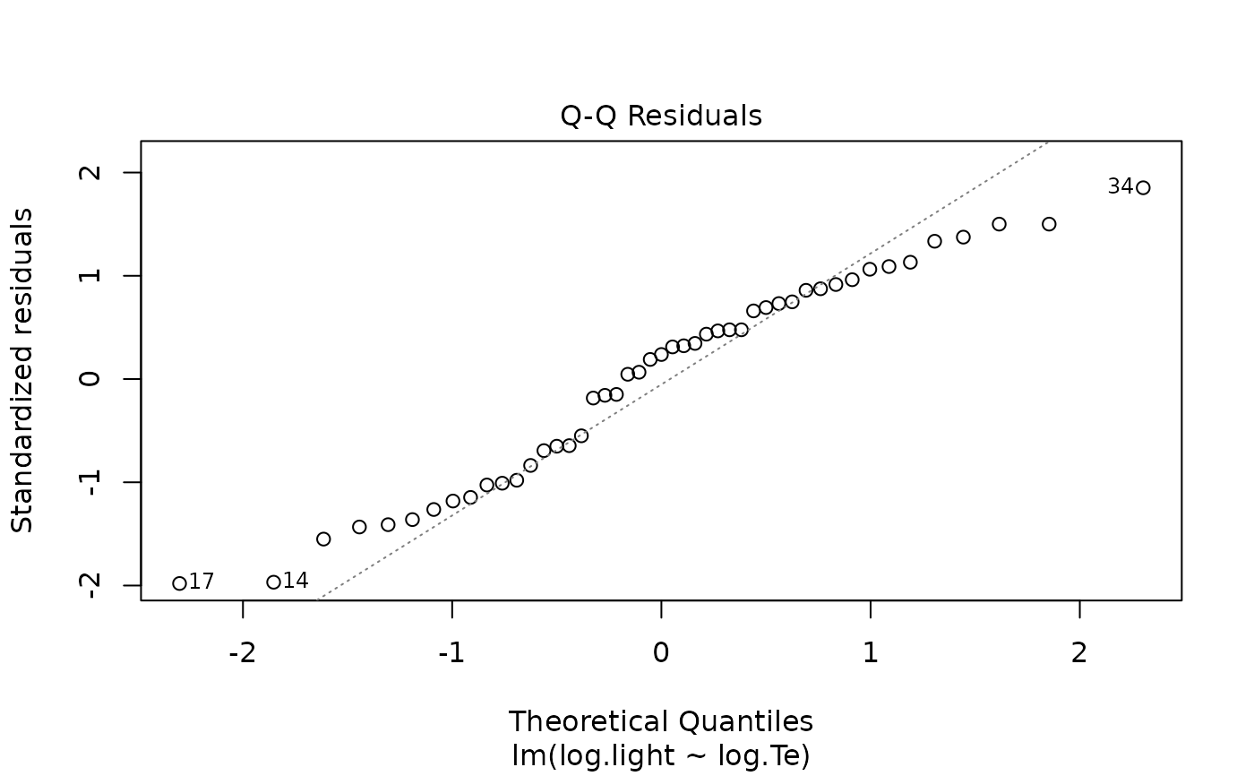 #> log.Te -0.4133 0.2863 -1.444 0.156