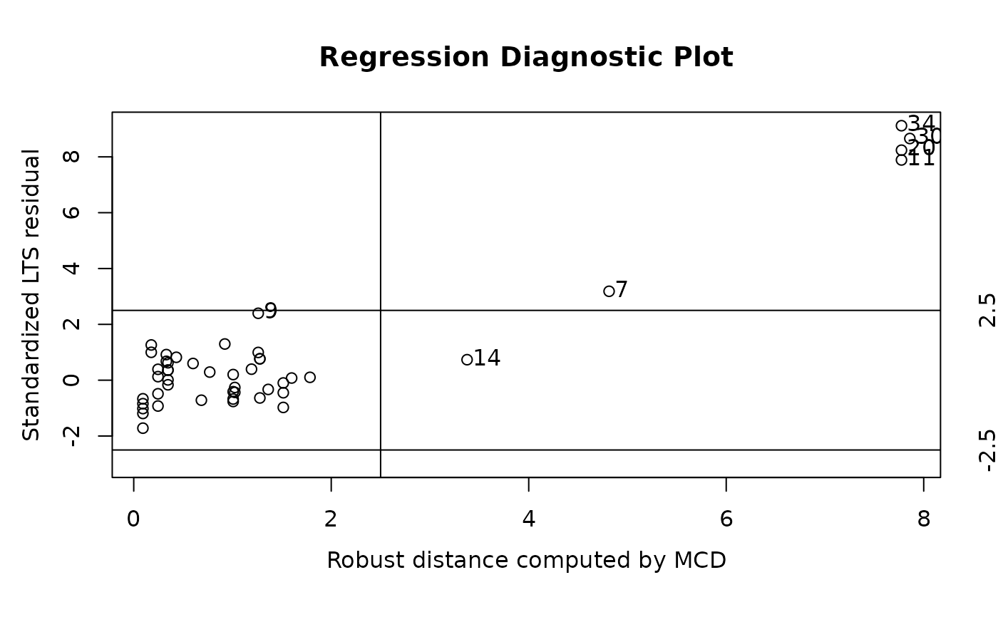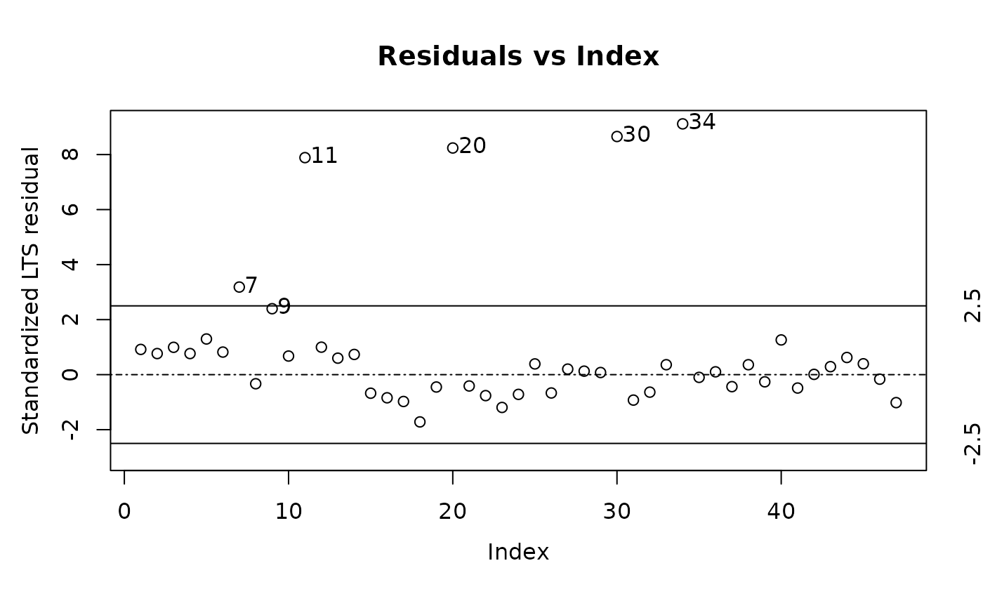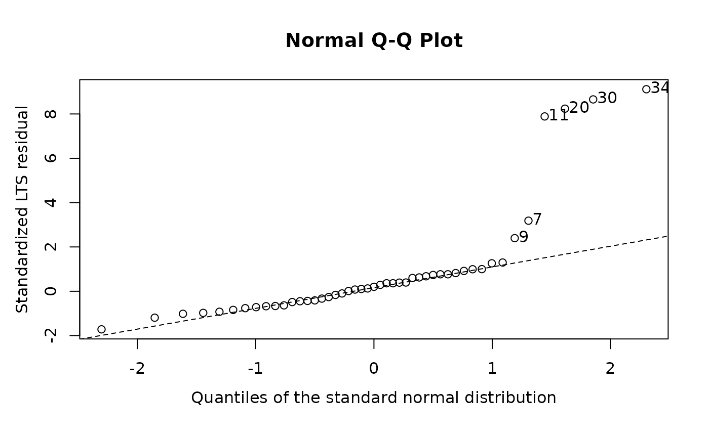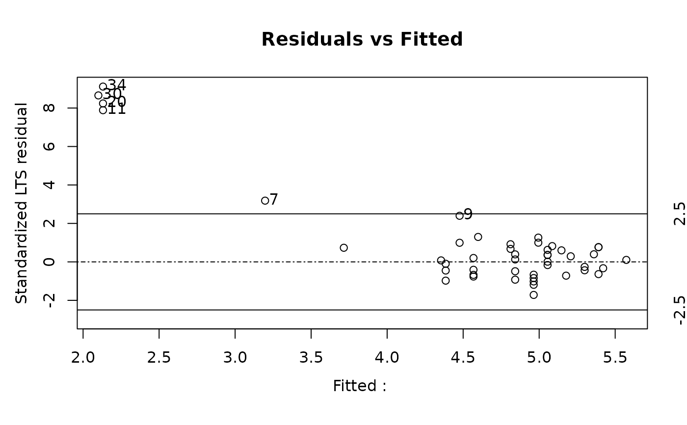lts.stars <- ltsReg(log.light ~ log.Te, data = starsCYG)