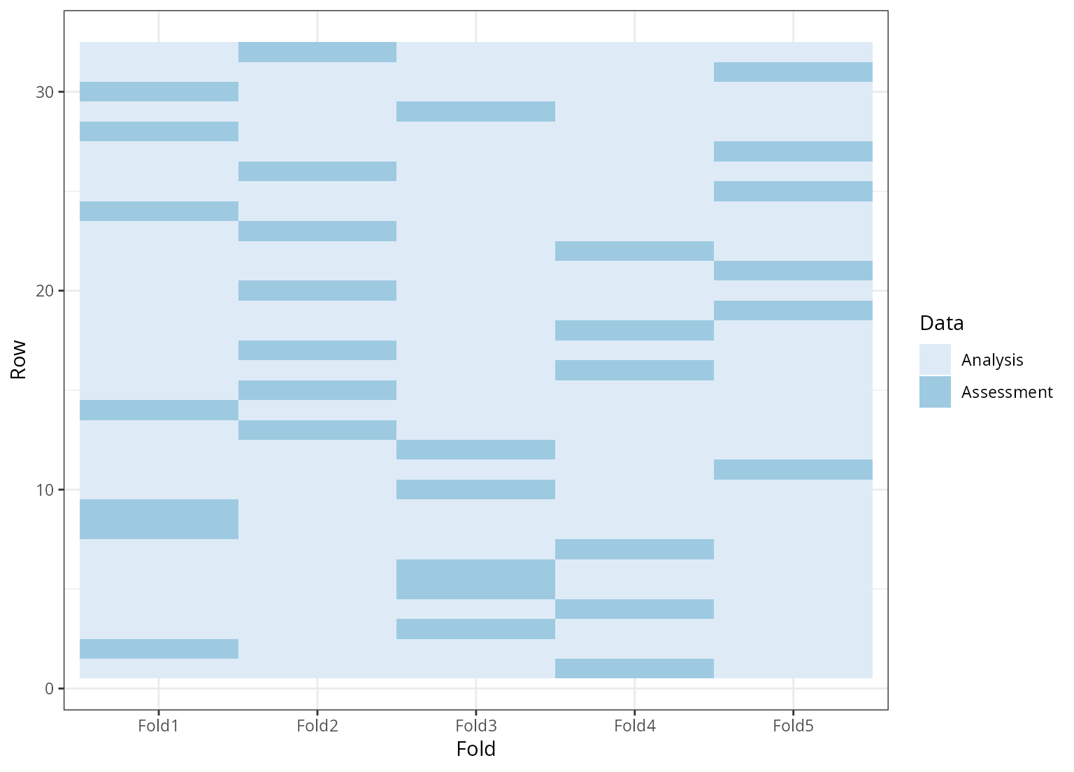 ggplot(cv, aes(x = Fold, y = Row, fill = Data)) +
