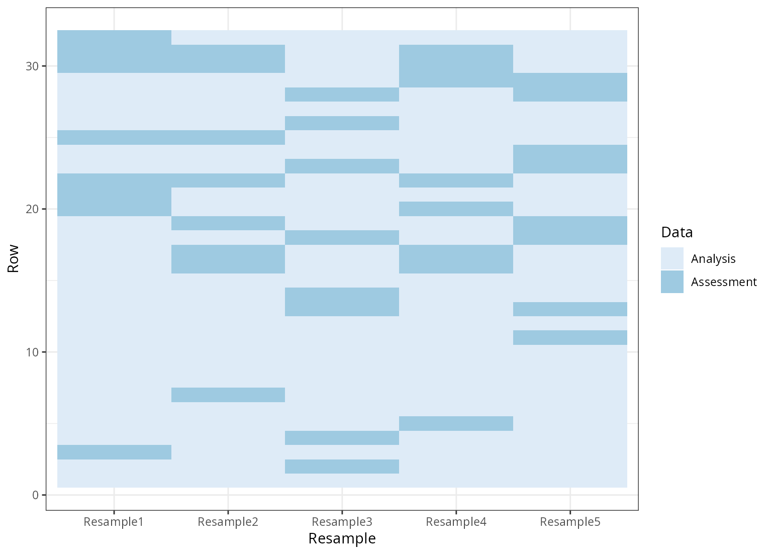 ggplot(mccv, aes(x = Resample, y = Row, fill = Data)) +