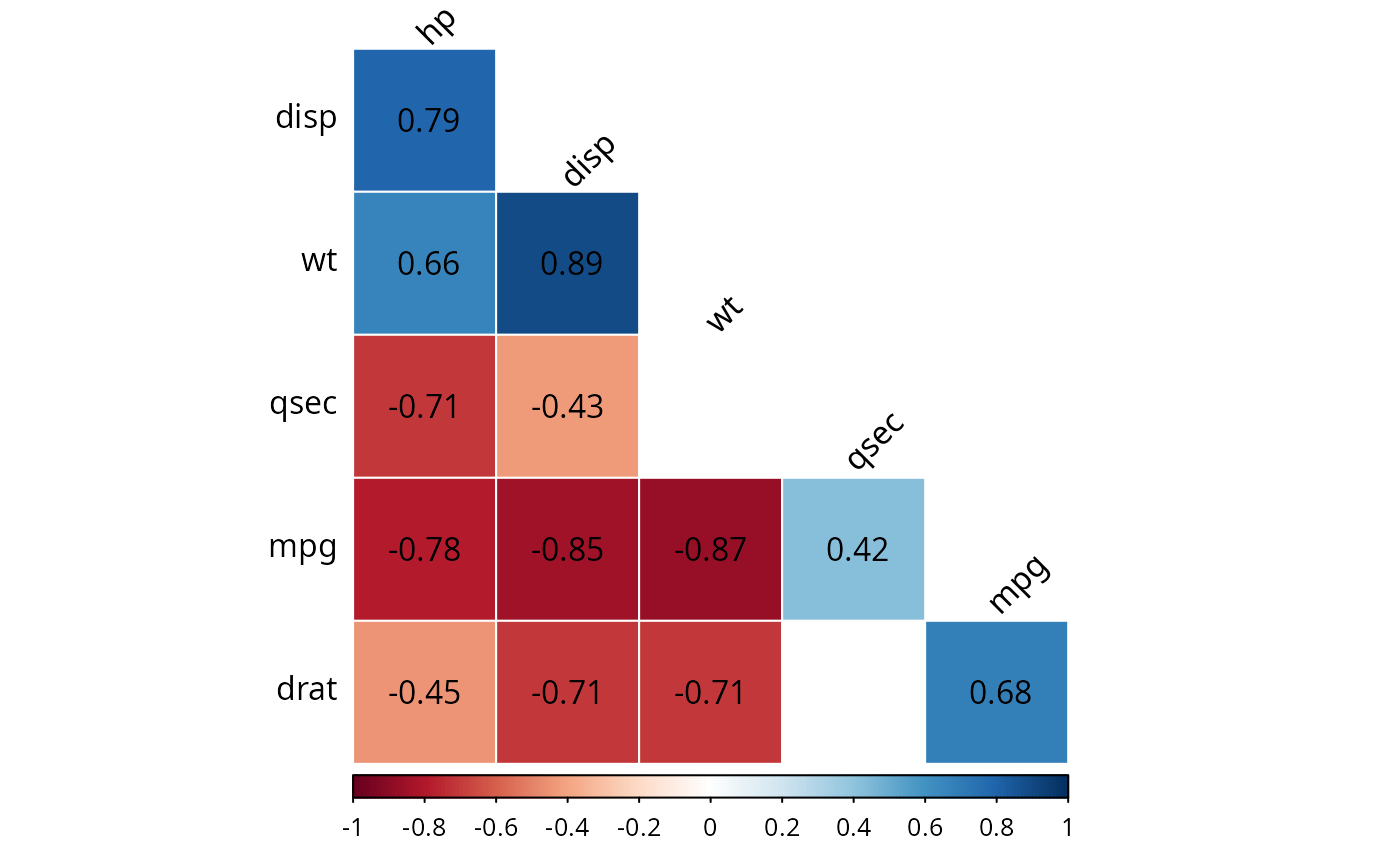 select(mpg, disp, hp, drat, wt, qsec) %>%