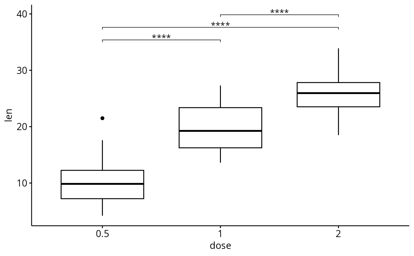 #> 3 len 1 2 20 20 -4.90 37.1 1.91e- 5 1.91e- 5 ****