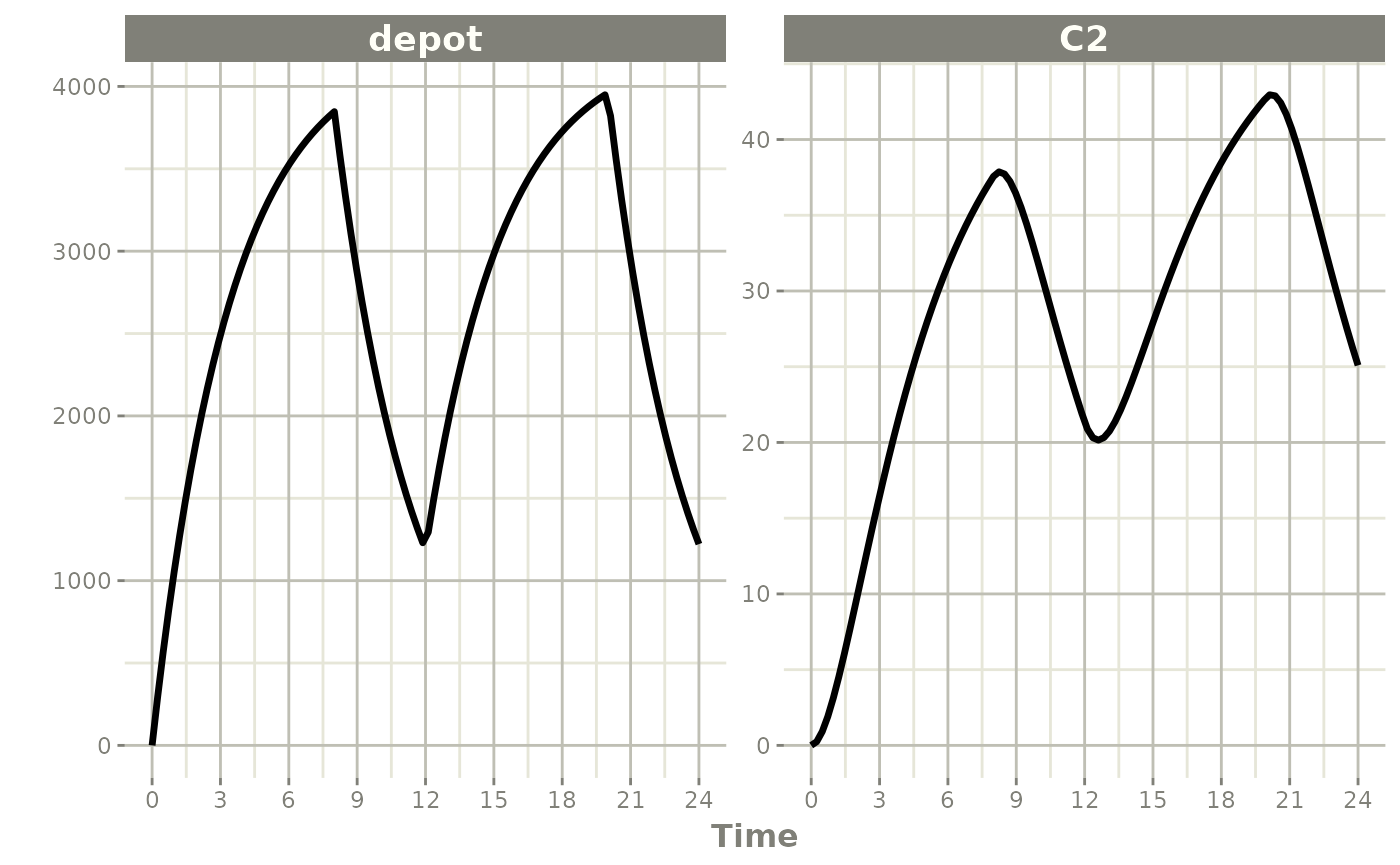p1 <- rxSolve(m1, ev, c(fdepot=1.25)) %>% plot(depot) +