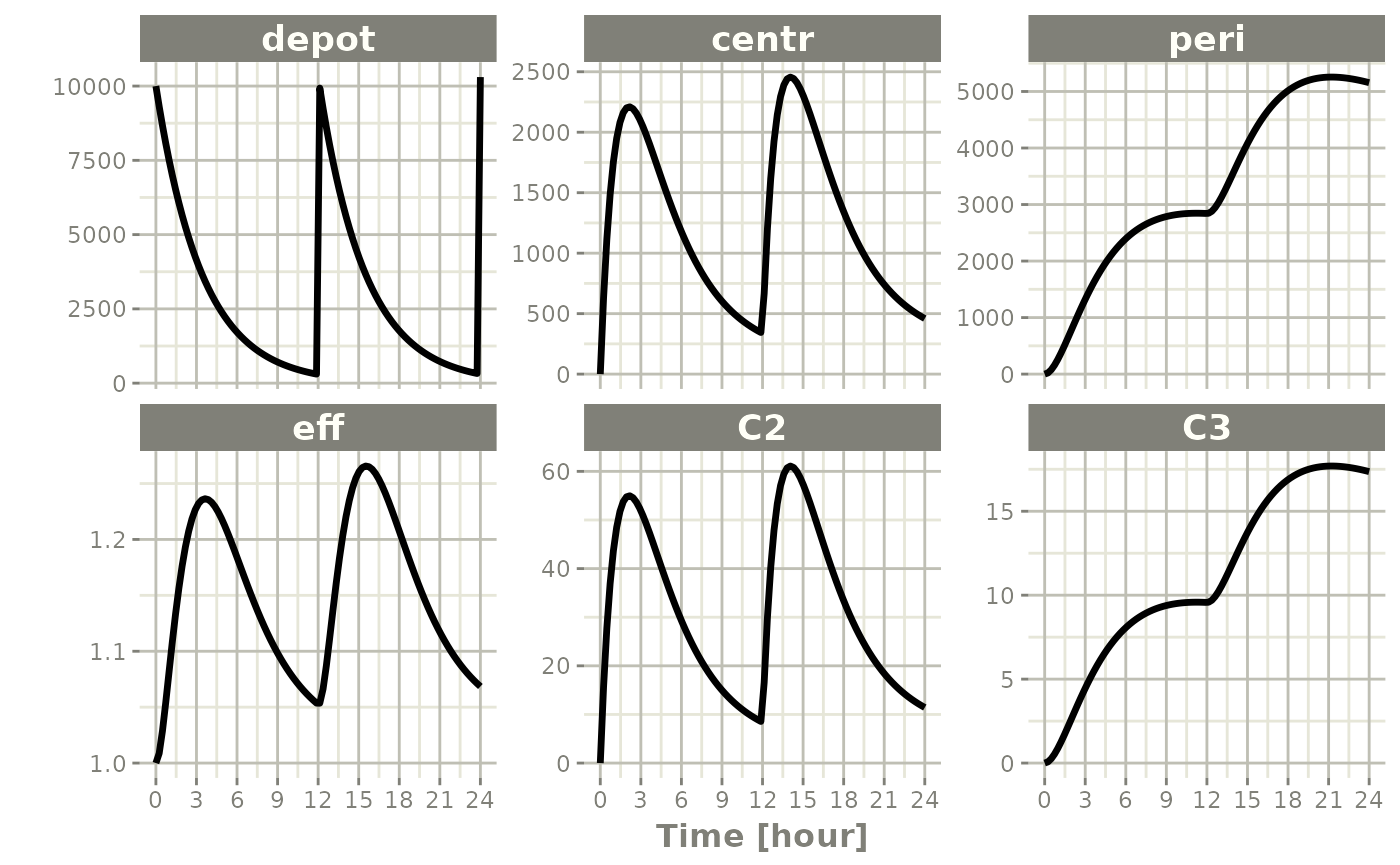 s <- rxSolve(m2, ev)## i parameter labels from comments are typically ignored in non-interactive mode