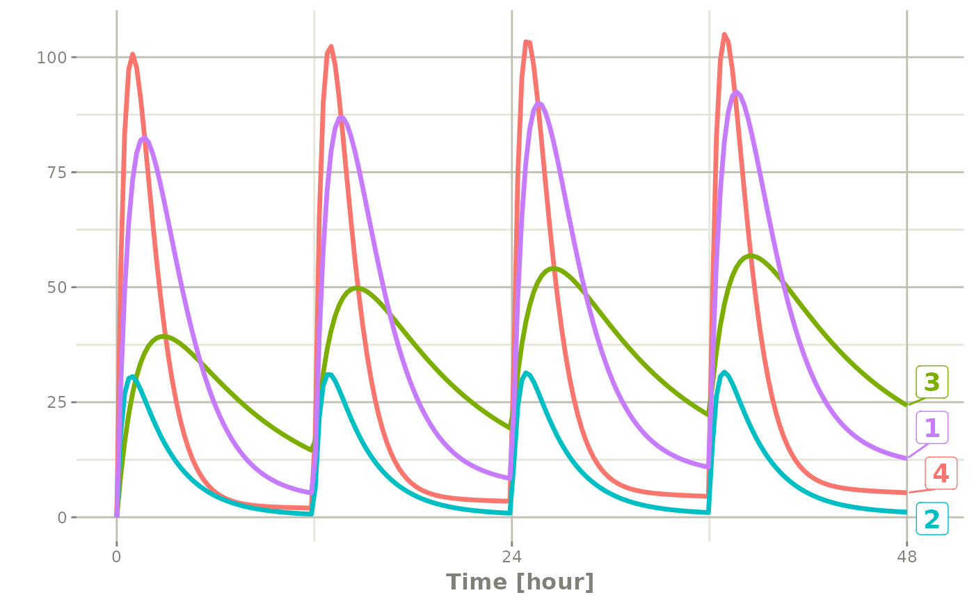 ## Starts at time 0; Default dosing interval is 24