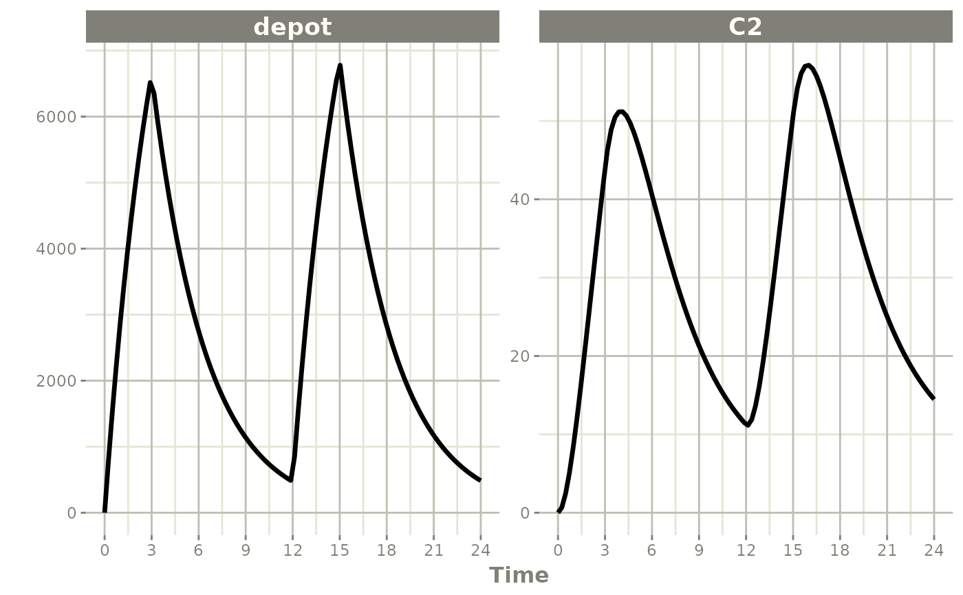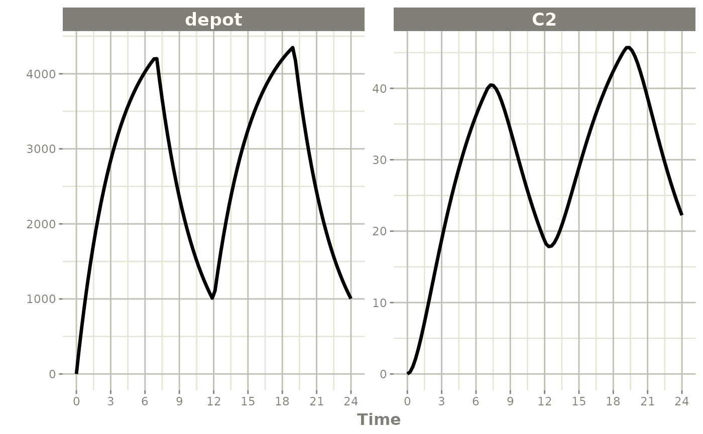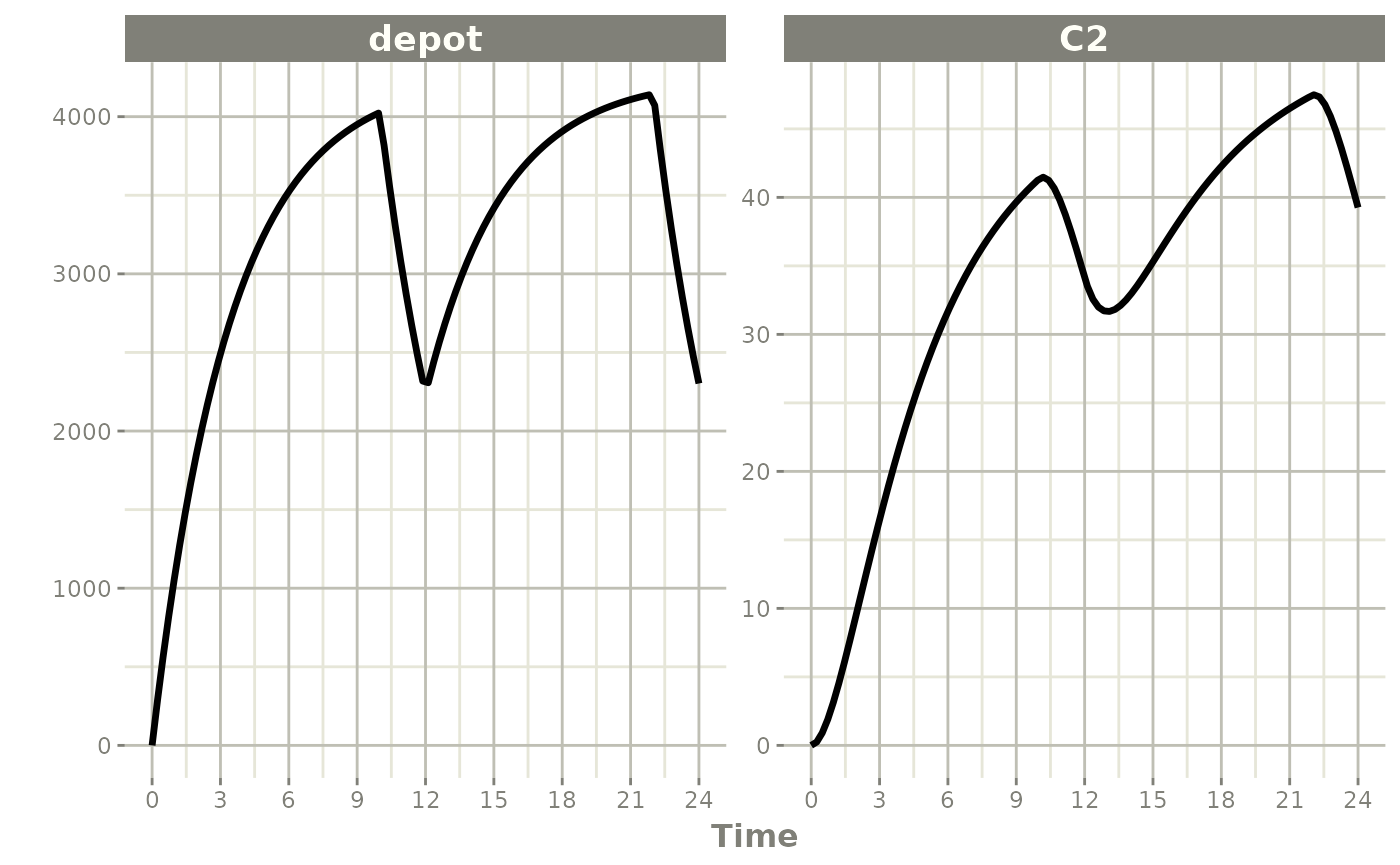 p1 <- rxSolve(m1, ev, c(fdepot=1.25)) %>% plot(depot) +