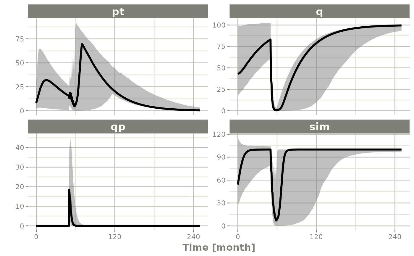 sim2 <- sim1 %>% confint(c("pt","q","qp","sim"),level=0.90); # Create Simulation intervals