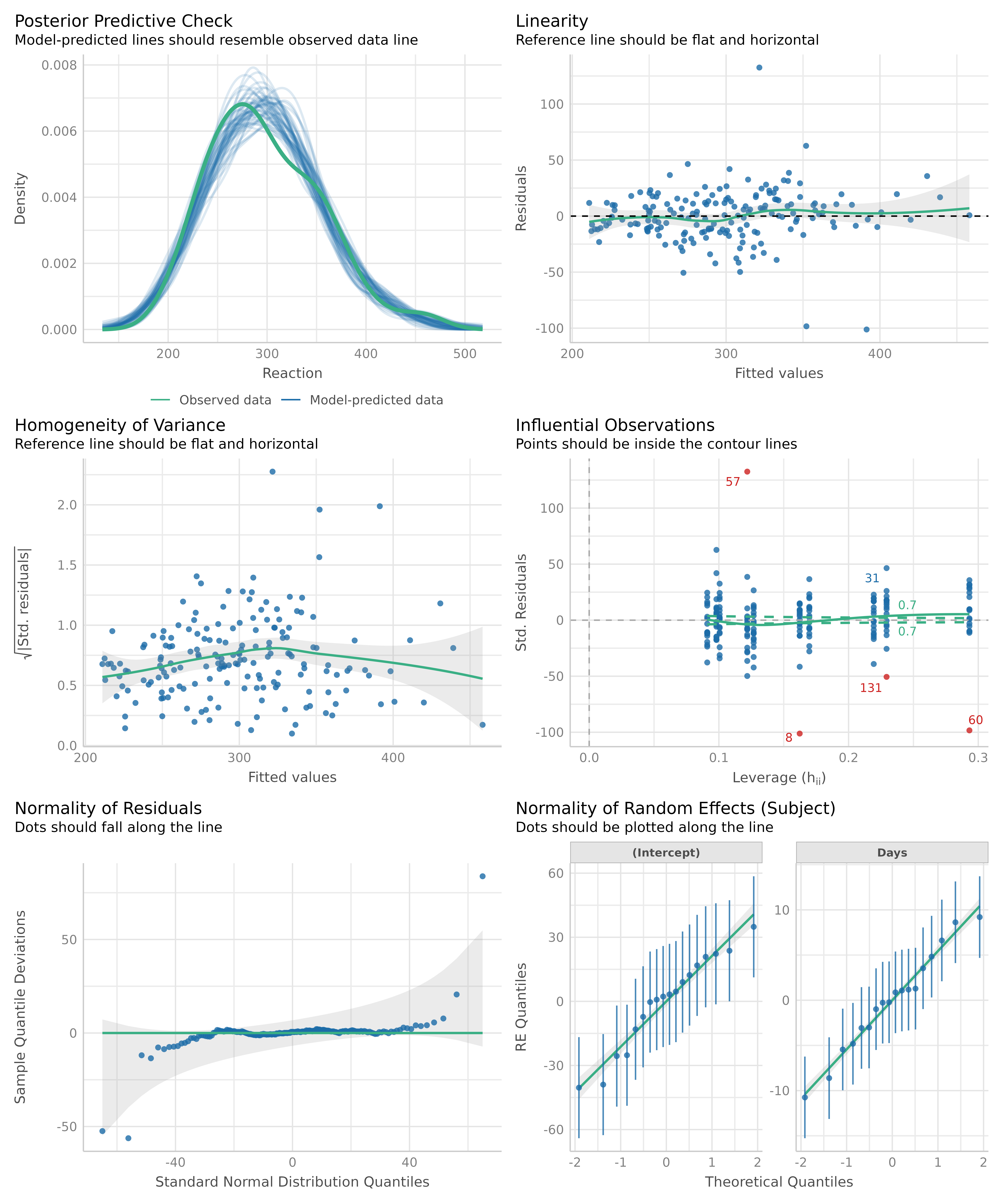 check_model(model, panel = FALSE)Note that not all checks supported in performance will
