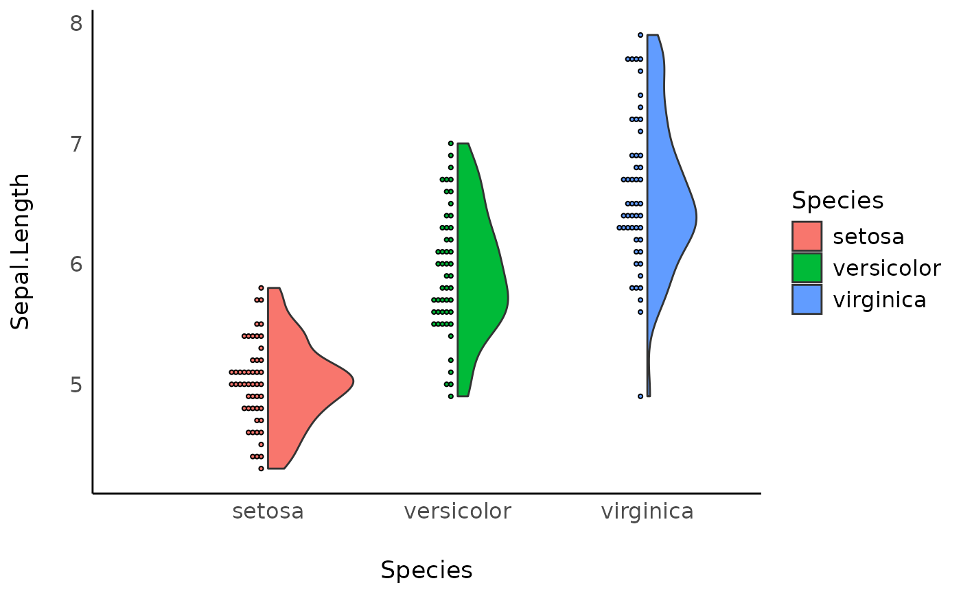 Create a half-violin half-dot plot, useful for visualising the distribution and the sample size at the same time.