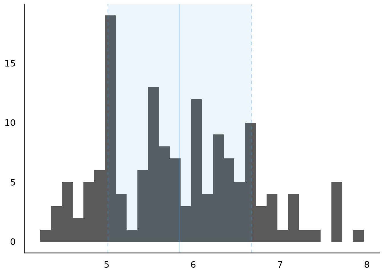 #> 5.84 | 0.83 | 1.30 | [4.30, 7.90] | 0.31 | -0.55 | 150 | 0