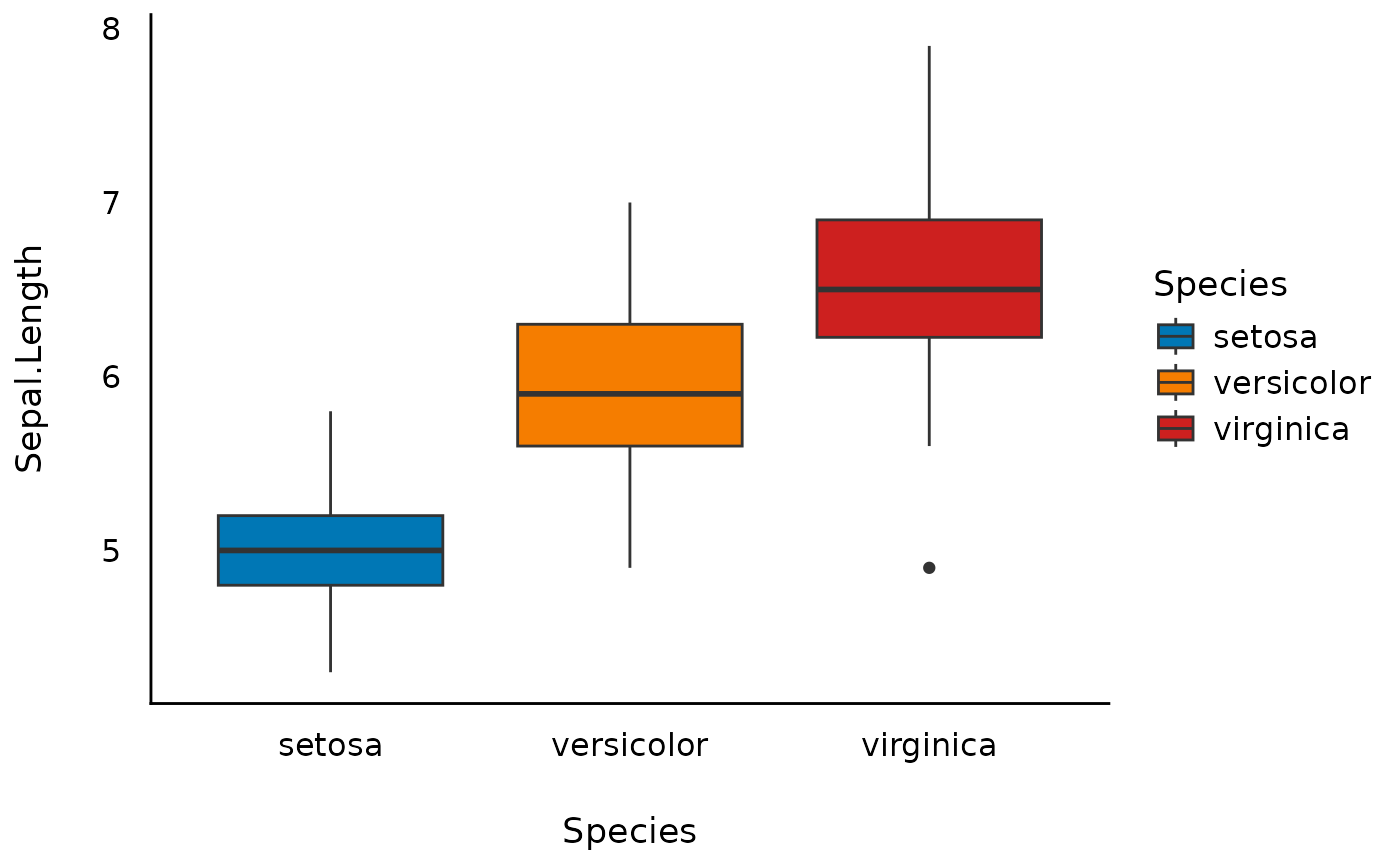 ggplot(iris, aes(x = Species, y = Sepal.Length, fill = Species)) +