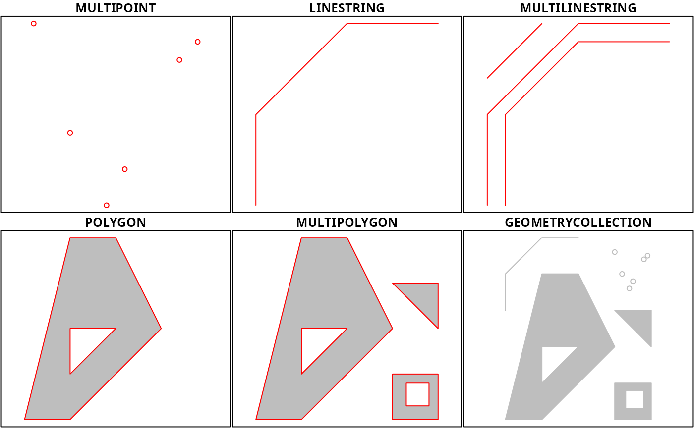 The following seven simple feature types are the most common, and are for instance the only ones used for GeoJSON: