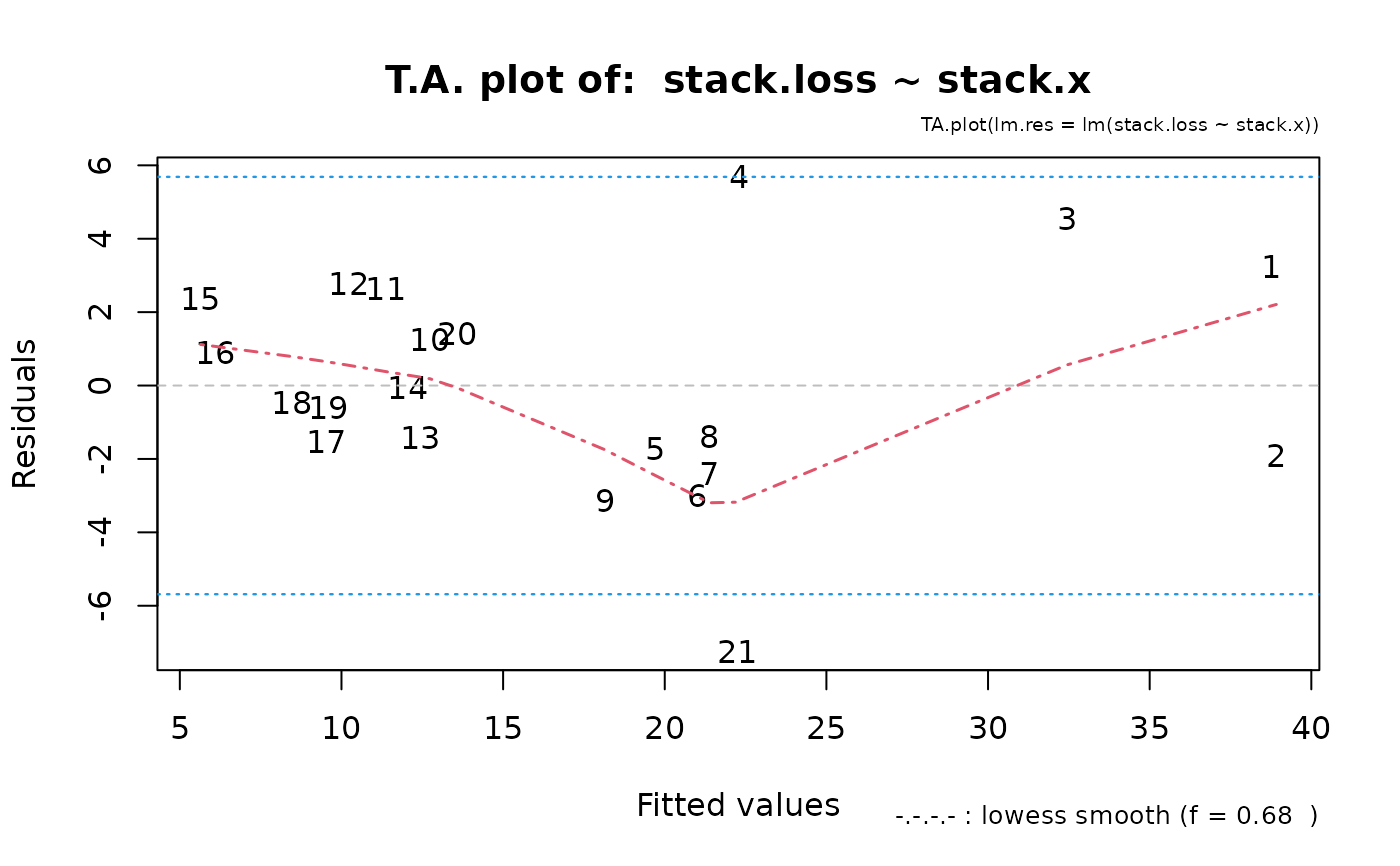 TA.plot(lm(stack.loss ~ stack.x))